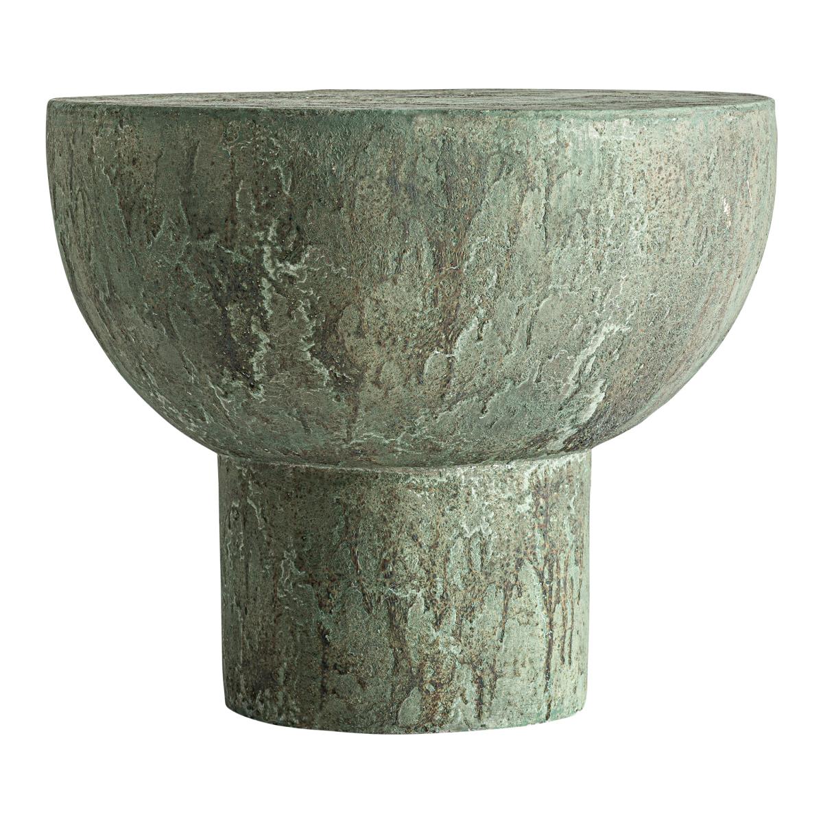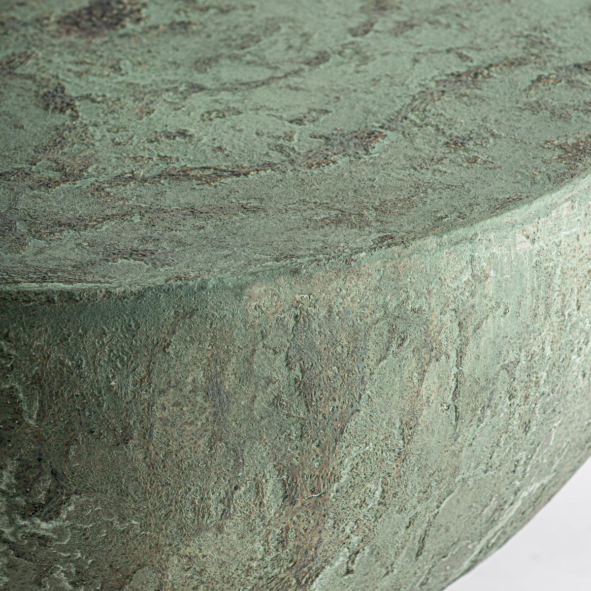 Mesa auxiliar, fabricado en cemento en color verde.