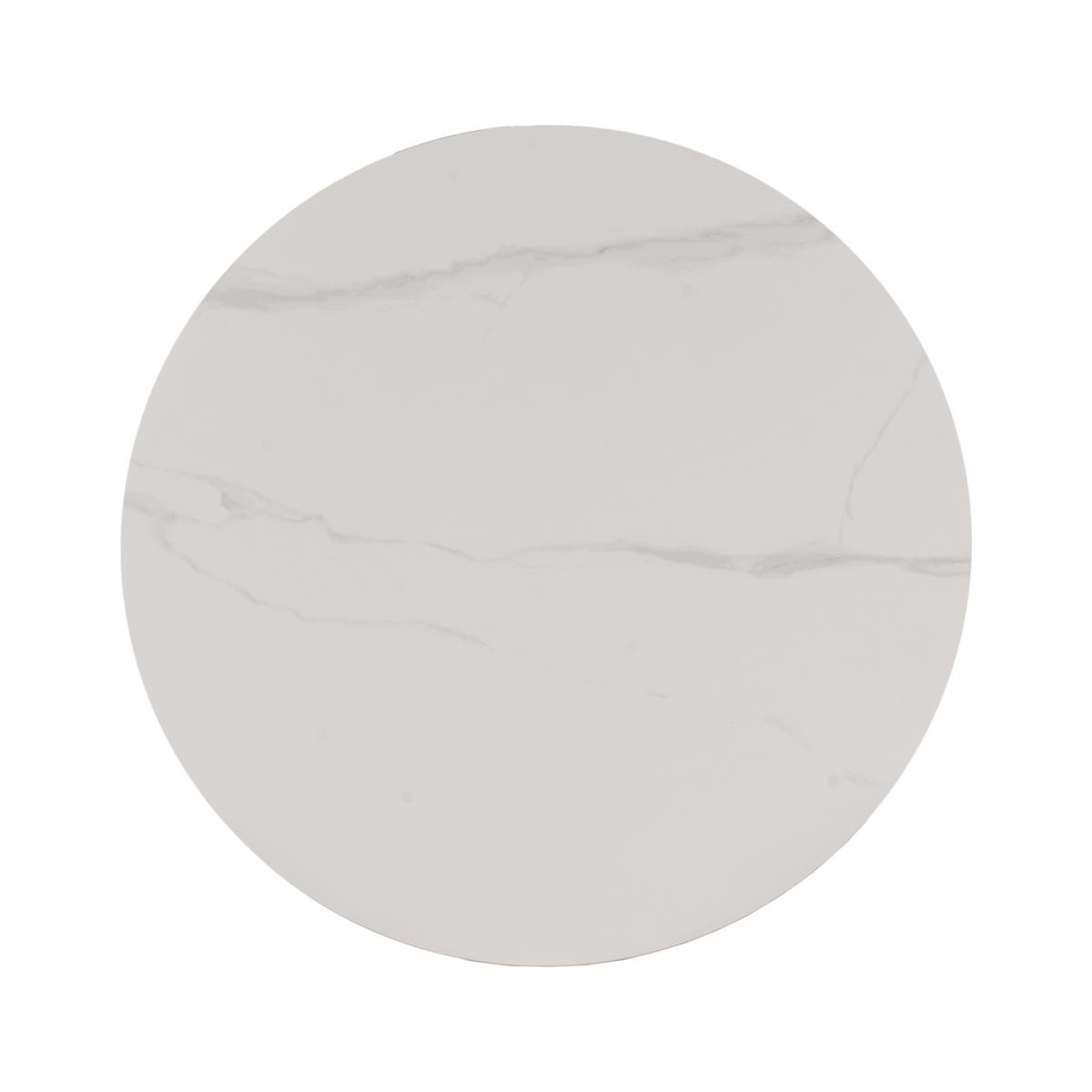 MESA CENTRO BLANCO-NATURAL 80 X 80 X 35 CM Material: patas de metal (hierro) - top cerámico imitación mármol Grueso top: 2cm. Para montar.