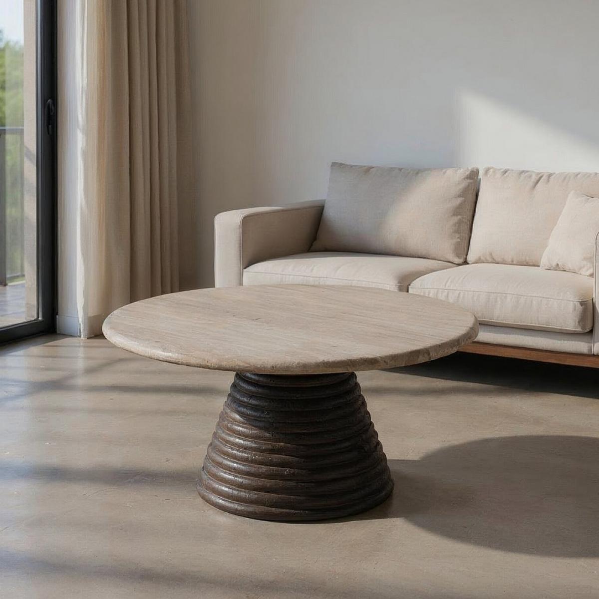 MESA CENTRO MÁRMOL/MADERA SALÓN 90 X 90 X 43 CM Material: madera de mango, mármol. El mármol es un material natural con variaciones en su aspecto.