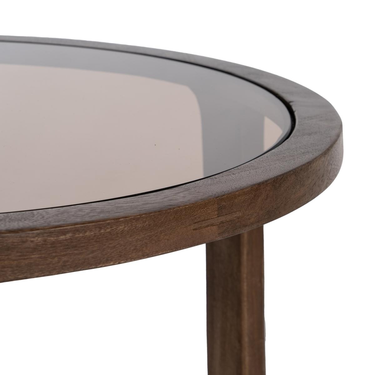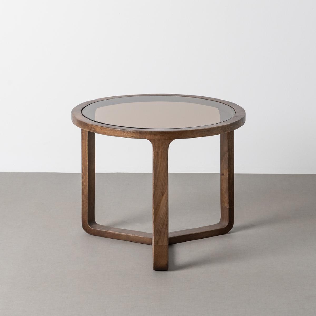 MESA CENTRO MADERA DE MANGO SALÓN 60 X 60 X 48 CM CRISTAL COLOR ÁMBAR.
