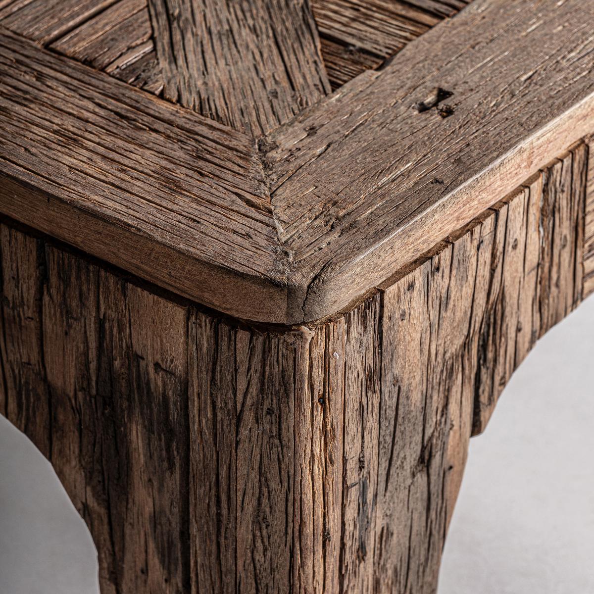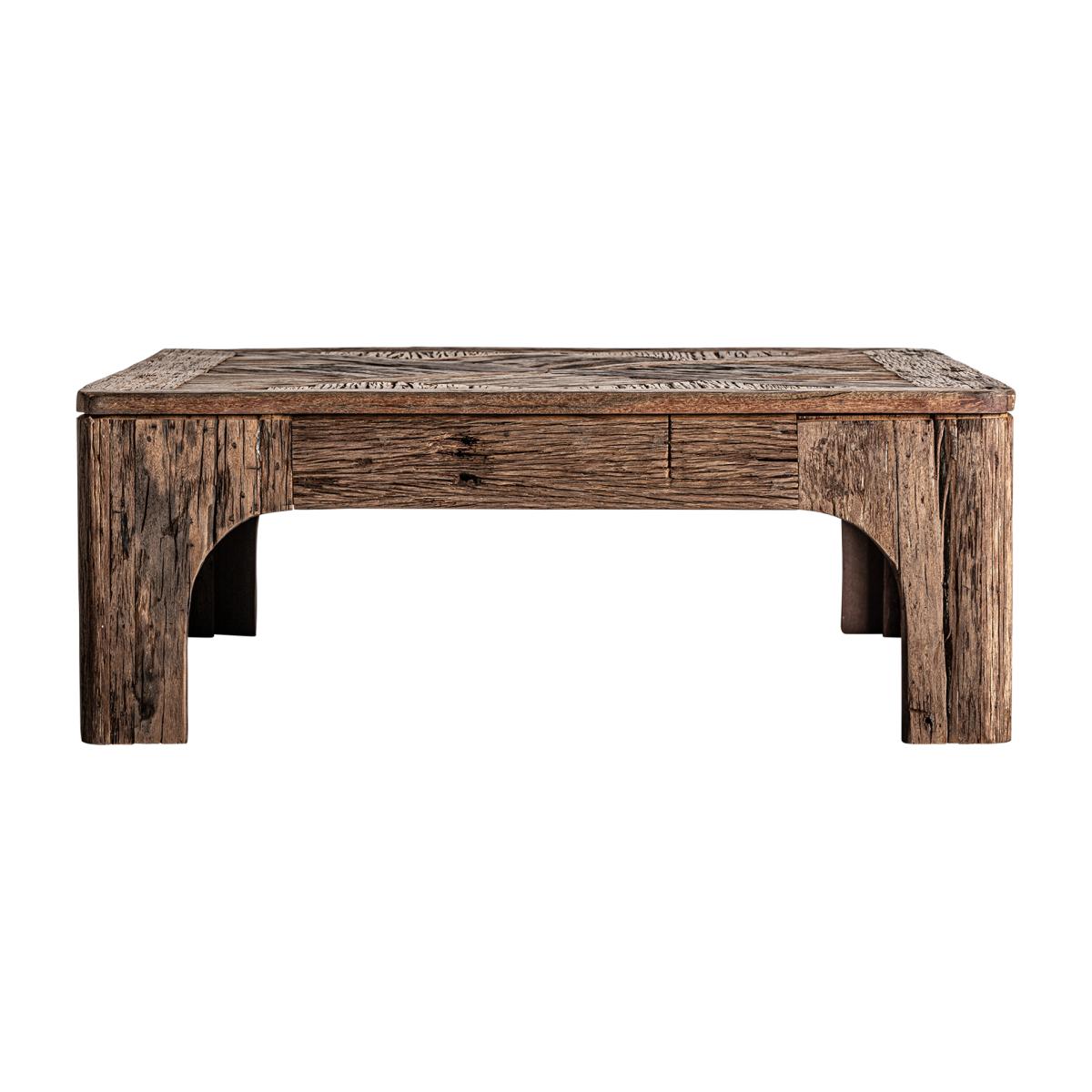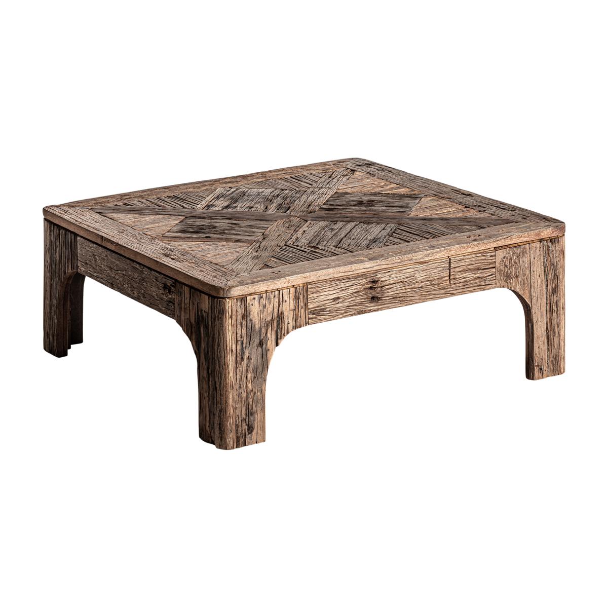 Mesa de centro samsun de estilo colonial, fabricado en madera recuperada en color marrón.