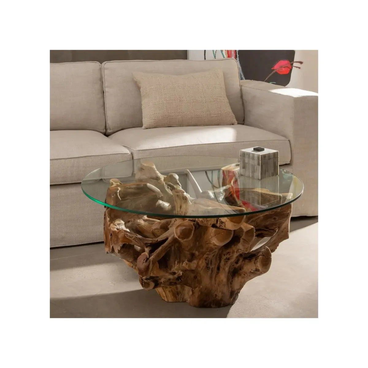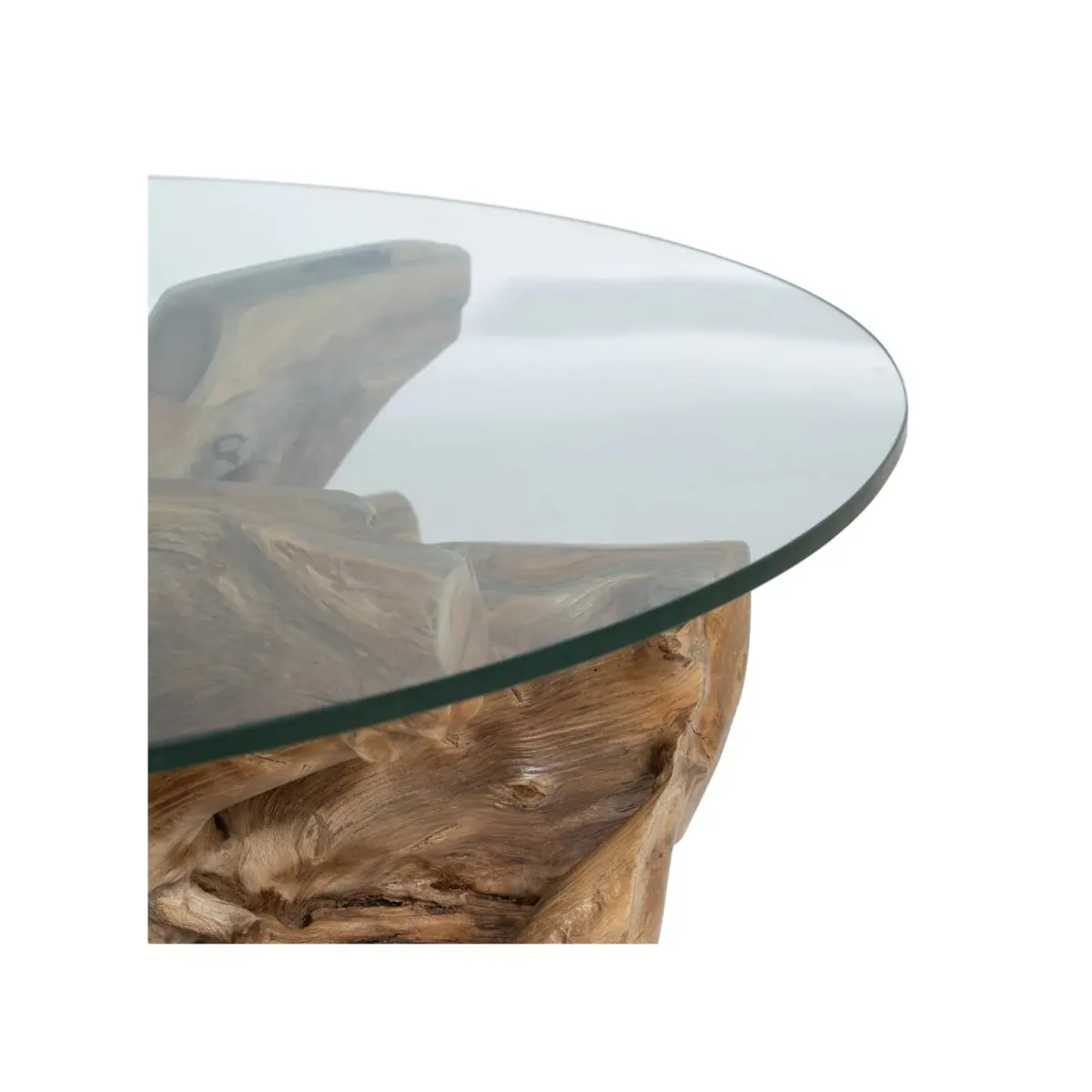 MESA CENTRO NATURAL MADERA / CRISTAL 90 X 90 X 45 CM Material: madera de teca, cristal.