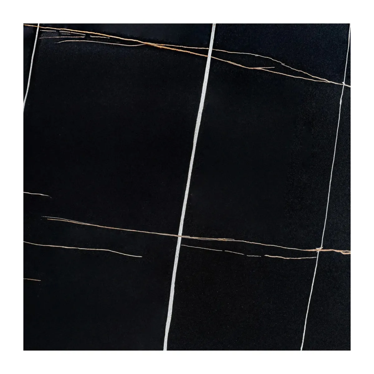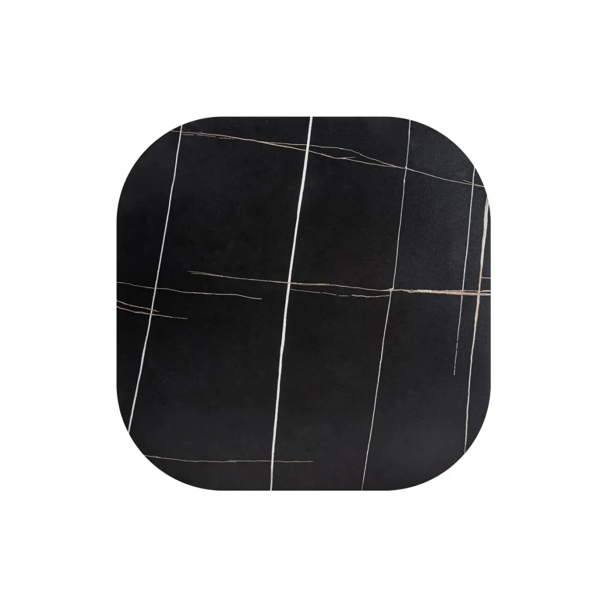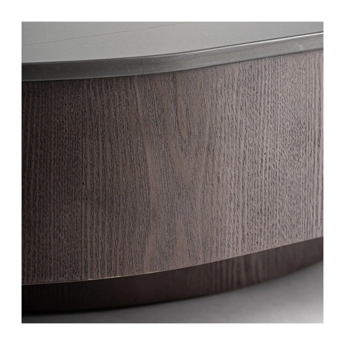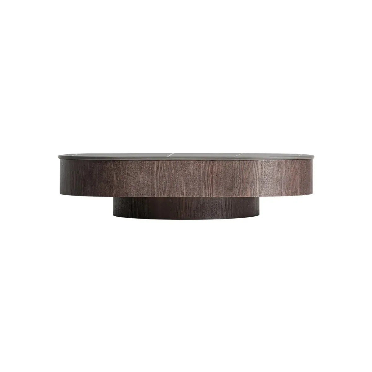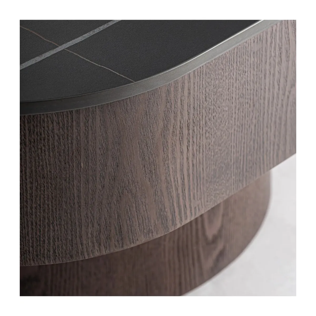 Mesa de centro Neufs de estilo contemporáneo fabricado en mármol sintético en color negro combinado con madera contrachapada en color marrón y chapa de nogal.