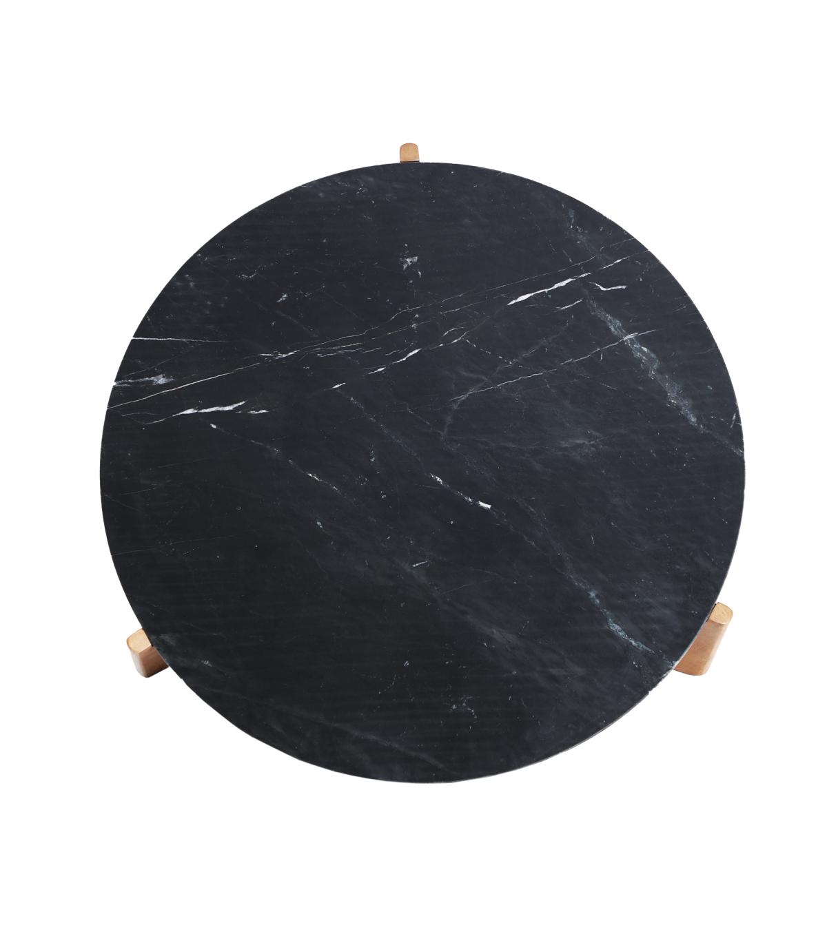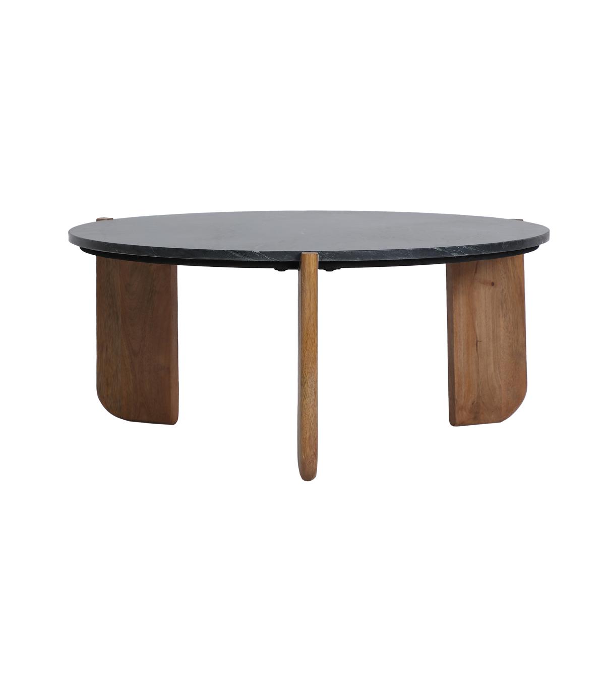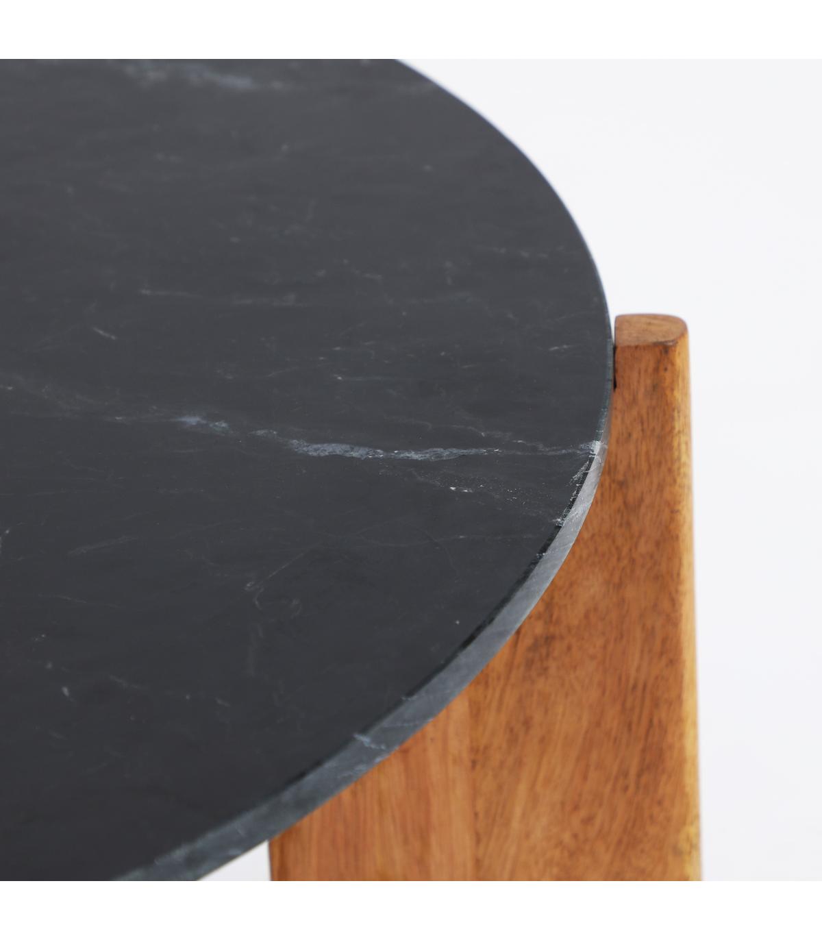 Mesa de centro Valigny de estilo contemporáneo, fabricado en mármol en color negro con acabado veteado, combinado con madera de mango en color marrón. Producto desmontable.