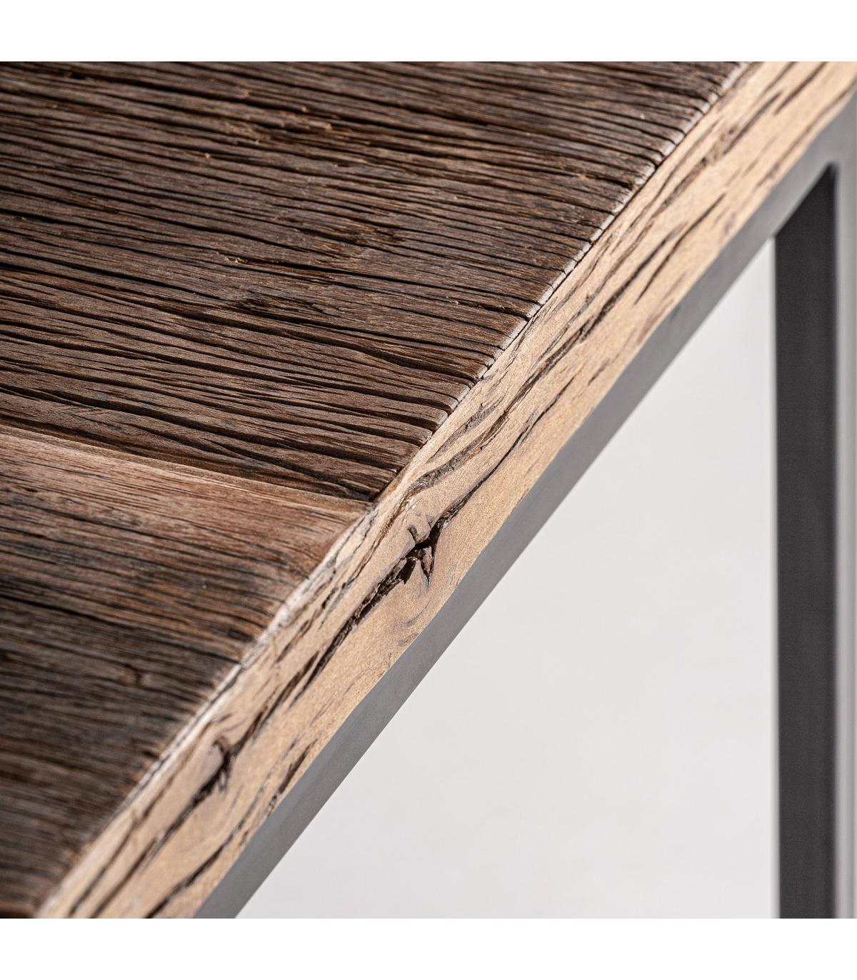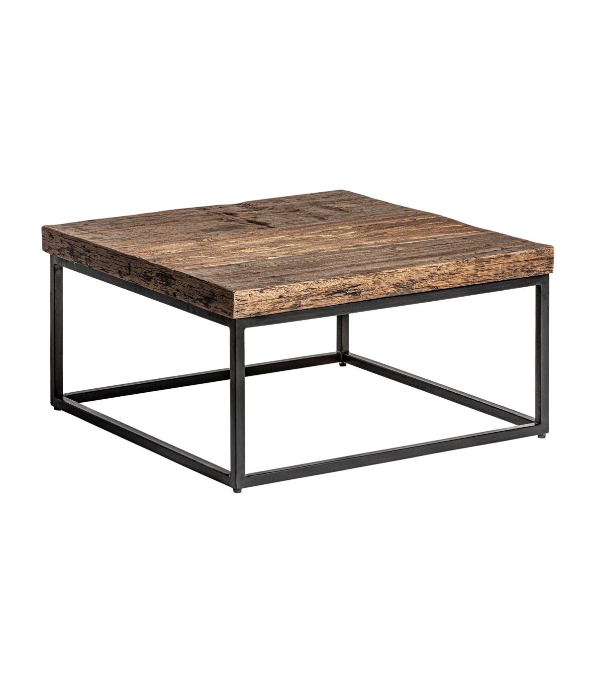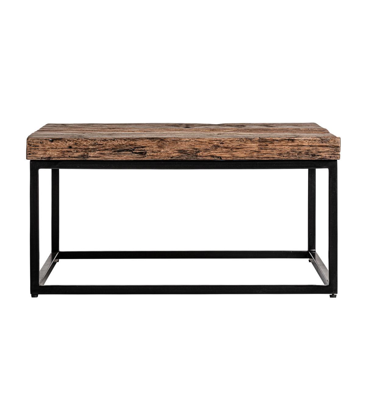 Mesa de centro walding de estilo industrial fabricado en madera recuperada en color marrón combinado con hierro.