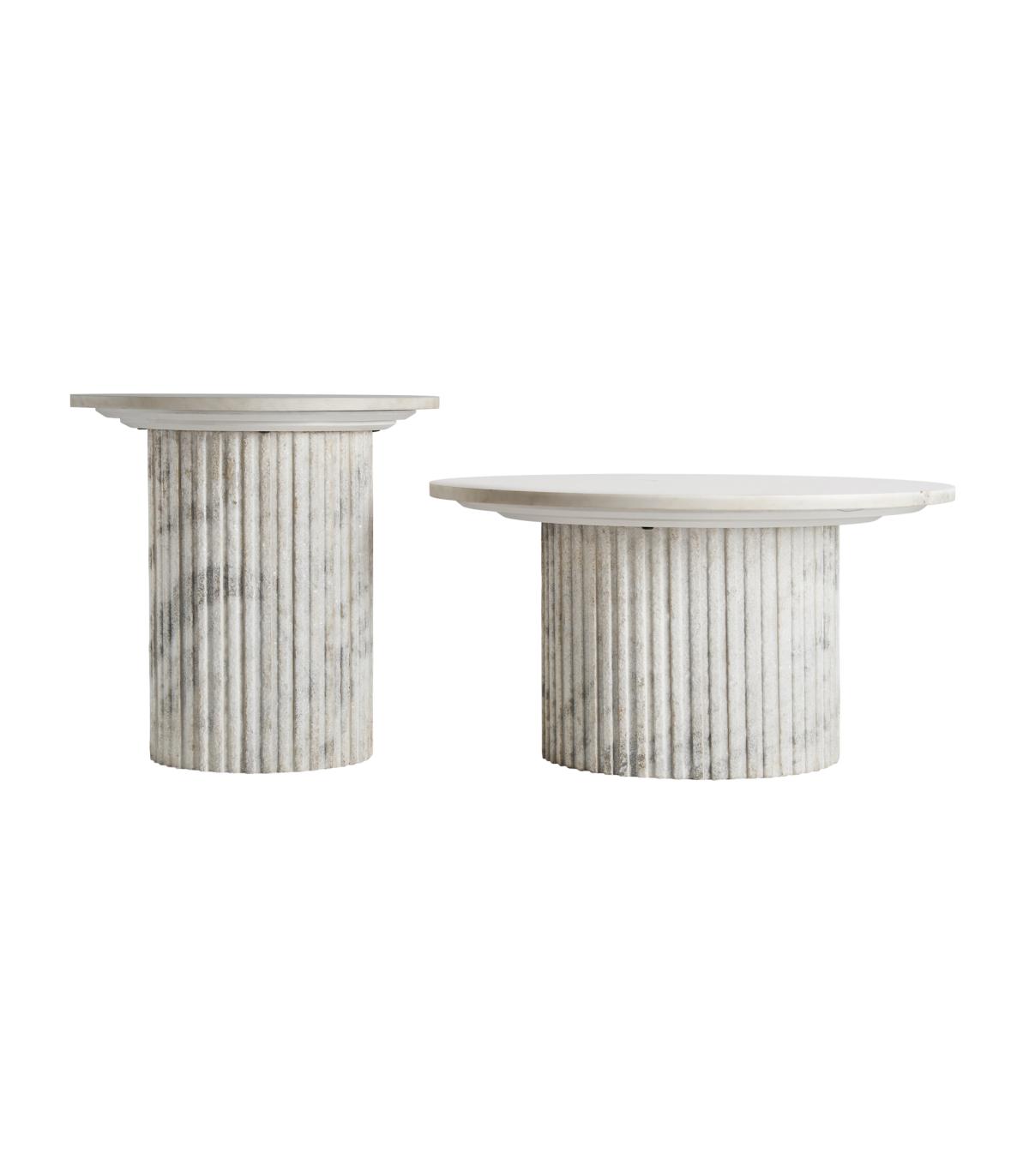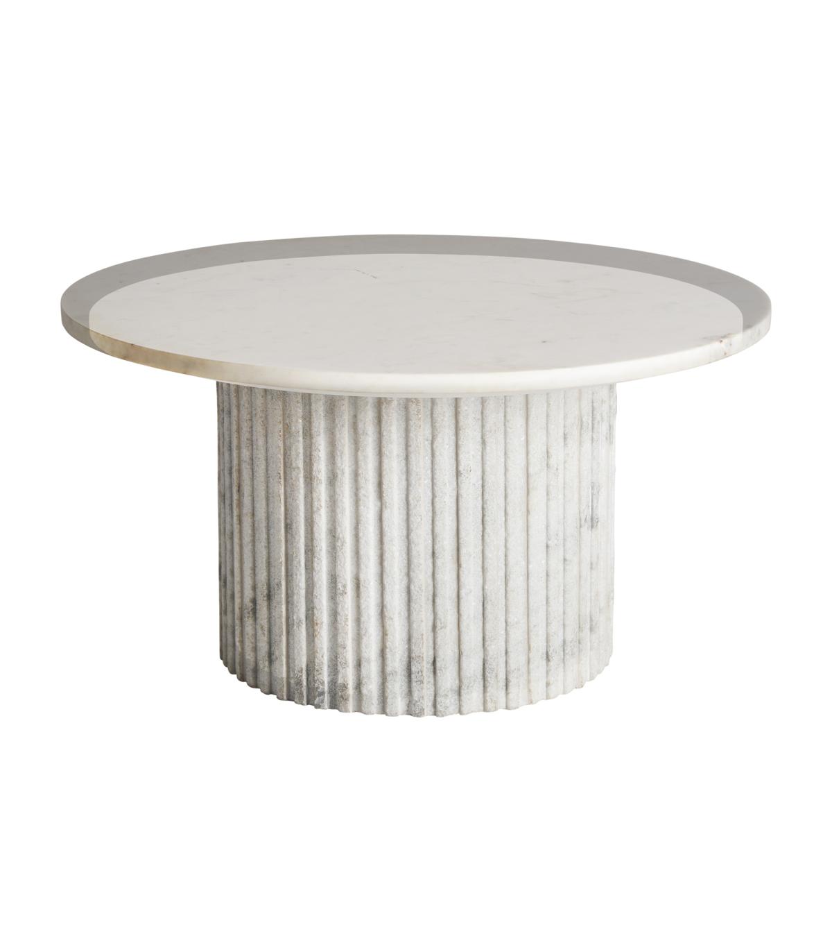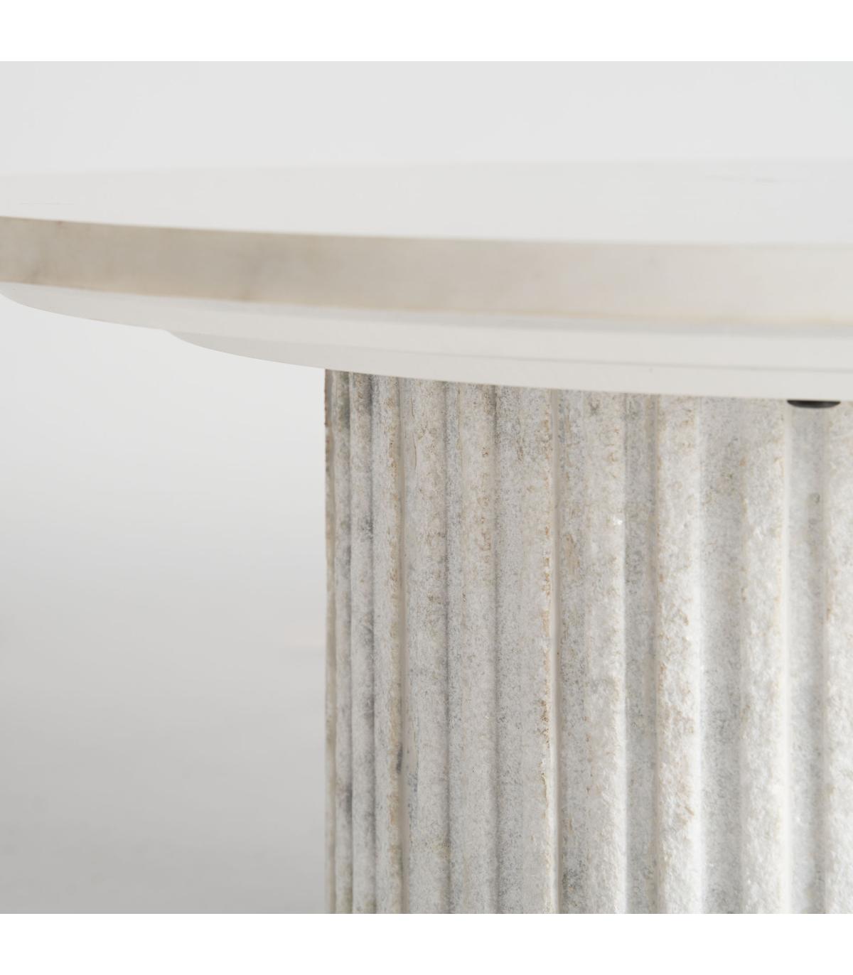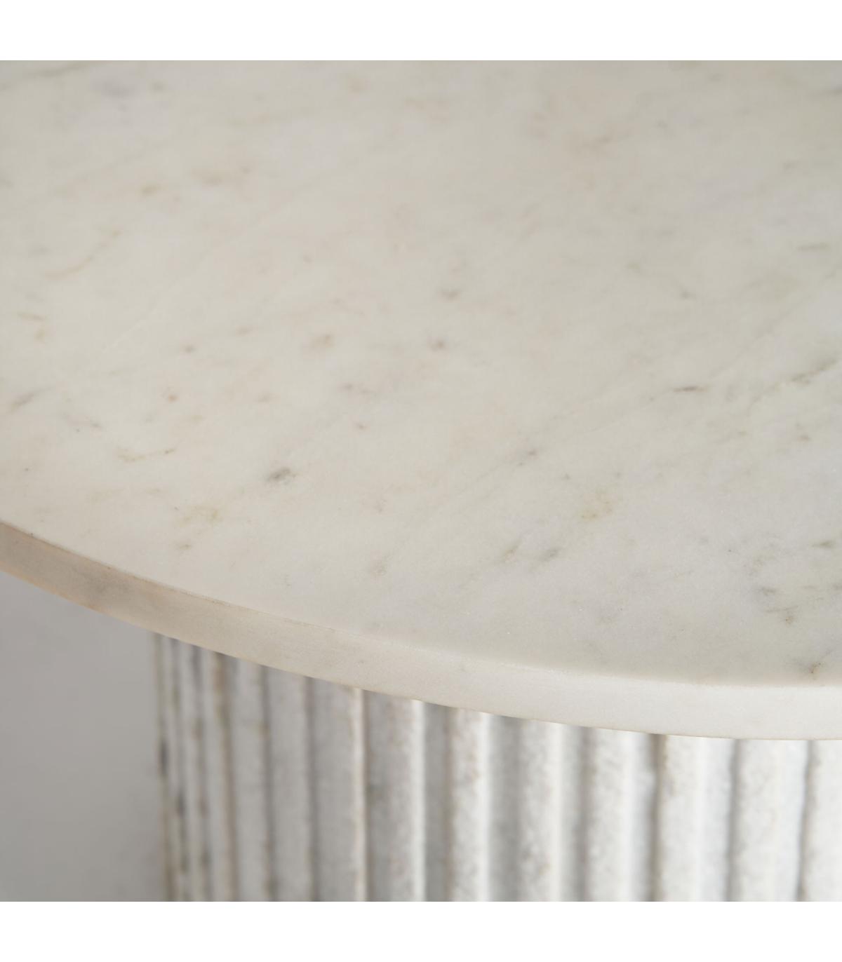 Mesa de centro esches de estilo art deco fabricado en mármol en color blanco combinado con madera. Producto desmontable.