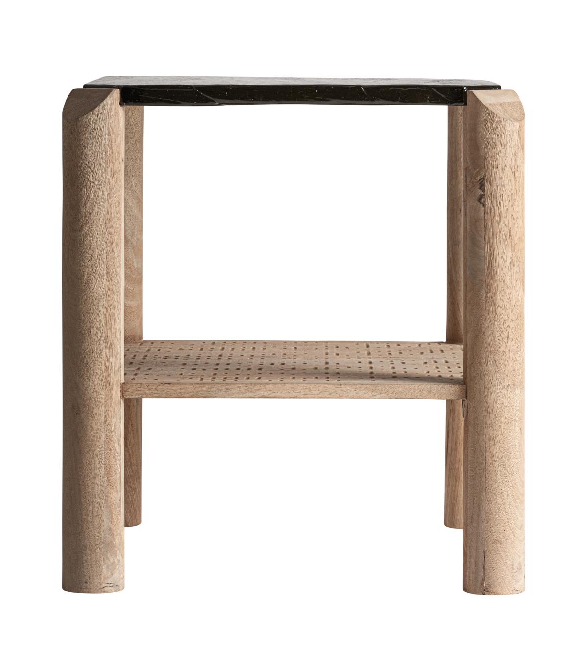 Mesa de centro jacquard de estilo contemporáneo. Fabricado en madera de mango en color marrón combinado con vidrio en color transparente.