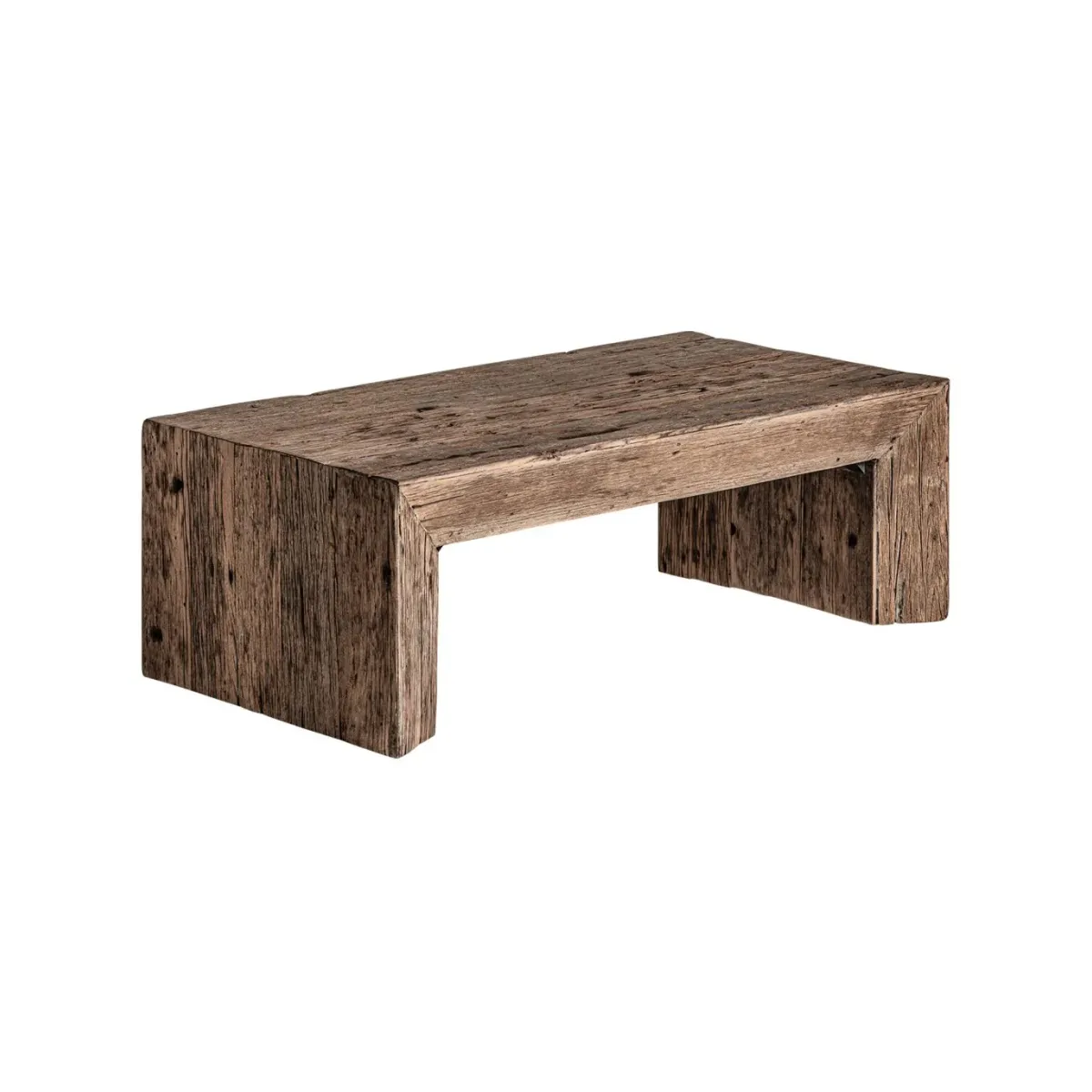 Mesa de centro samsun, en color natural envejecido, de estilo étnico. Fabricado en madera de pino reciclado. Varias maderas: pino, mango, teka, acacia.