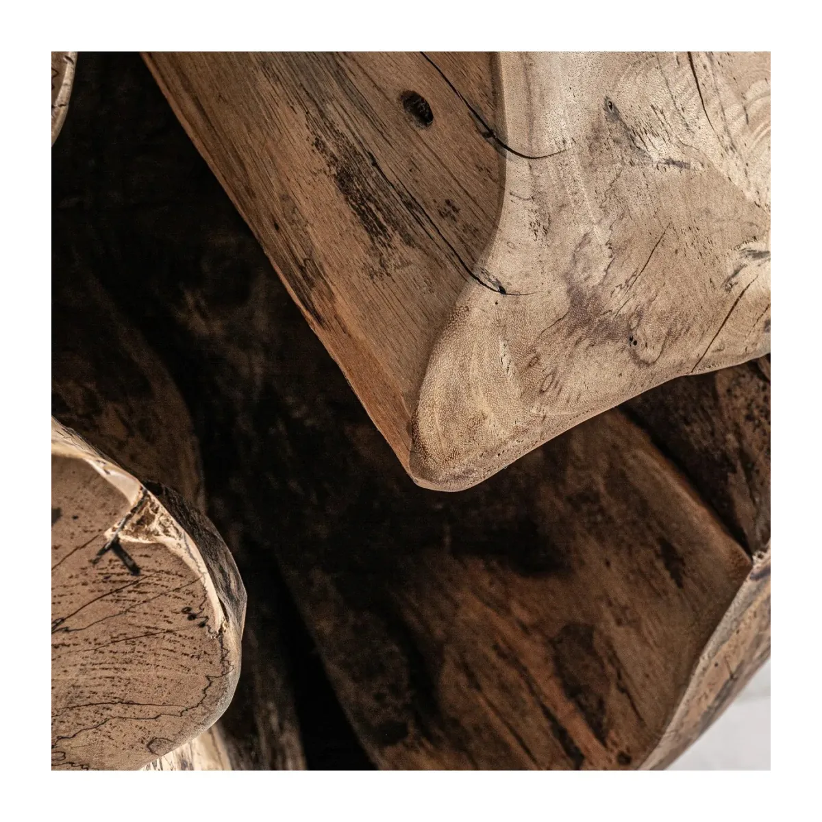 Mesa de centro dharm, en color natural envejecido, de estilo étnico. Fabricado en madera de tamarindo.
