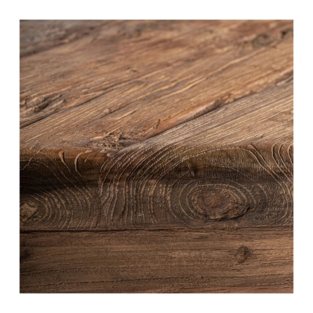 Cada pieza es seleccionada por su veta y textura única, garantizando una durabilidad excepcional y un carácter propio que mejora con el paso del tiempo.