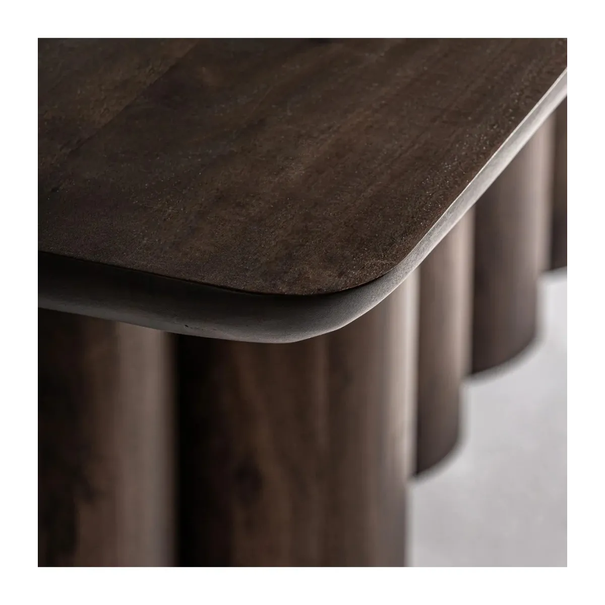 Mesa comedor beke de estilo art deco, fabricado en madera de acacia en color marrón con acabado natural. Producto desmontable.