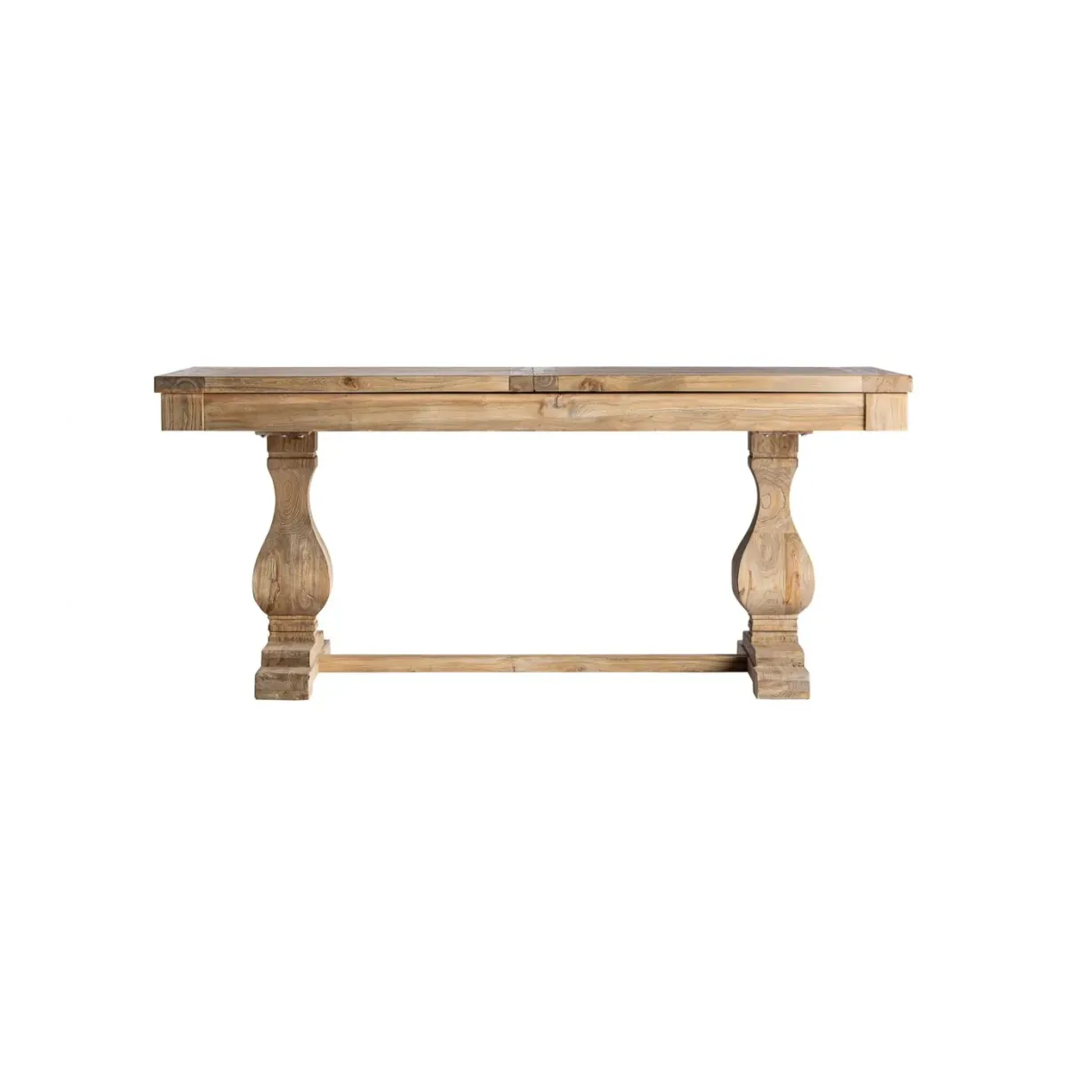 Mesa extensible rectangular berca de estilo clásico fabricado en madera de olmo reciclado en color marrón. Madera proveniente de antiguas puertaspor lo que puede haber imperfecciones. . Producto desmontable extensible.
