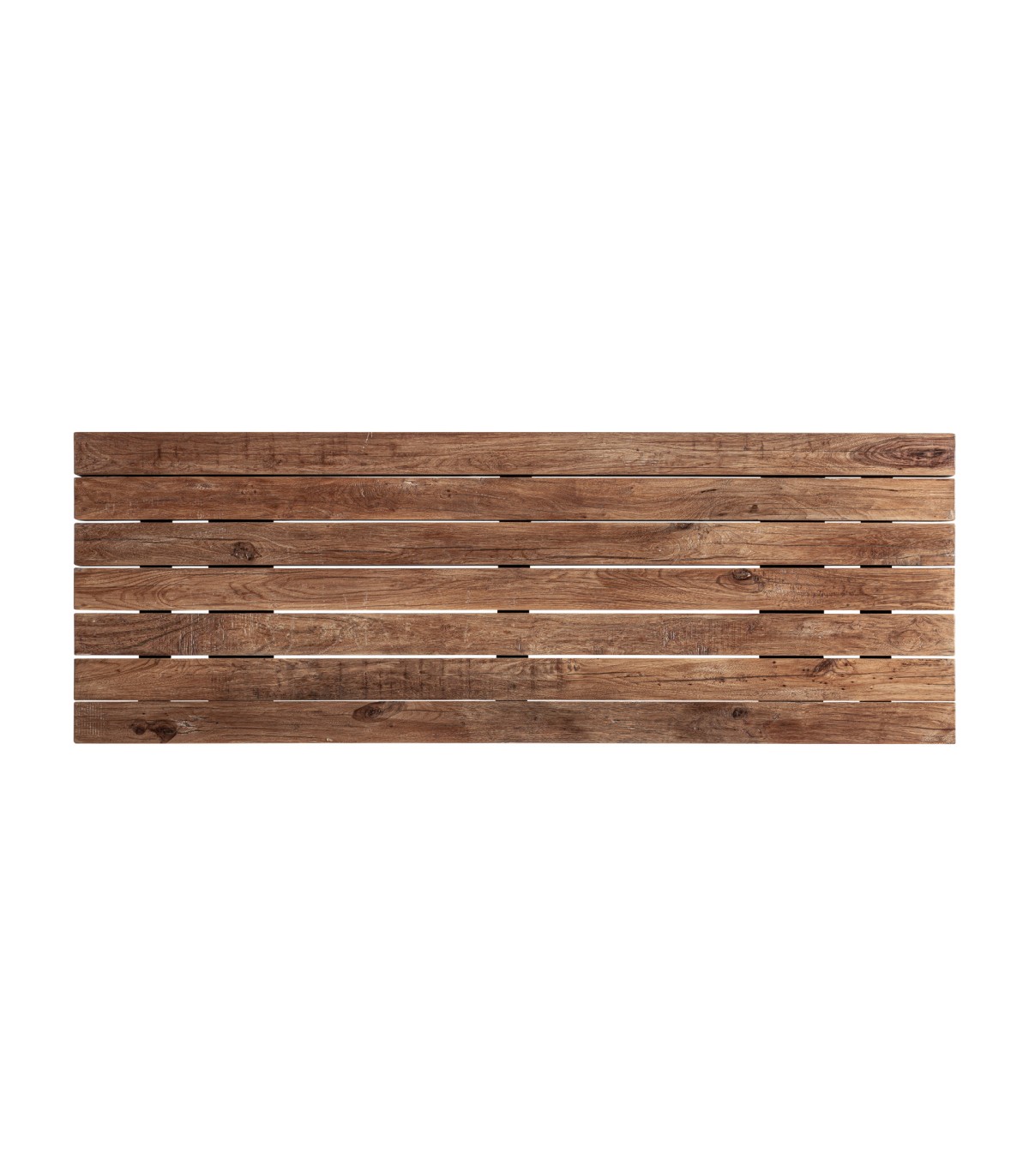 Mesa comedor Riom de estilo contemporáneo, fabricado en madera recuperada en color marrón. Producto desmontable.