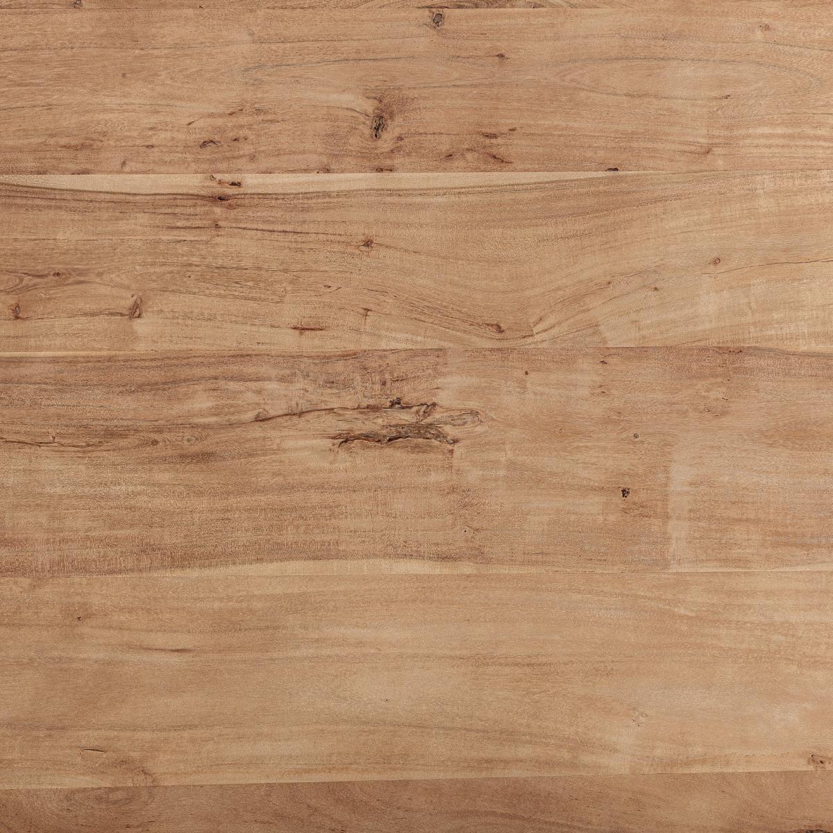 Mesa comedor Knaith de estilo contemporáneo fabricado en madera de mango en color marrón combinado con madera de acacia en color marrón claro. Producto desmontable.