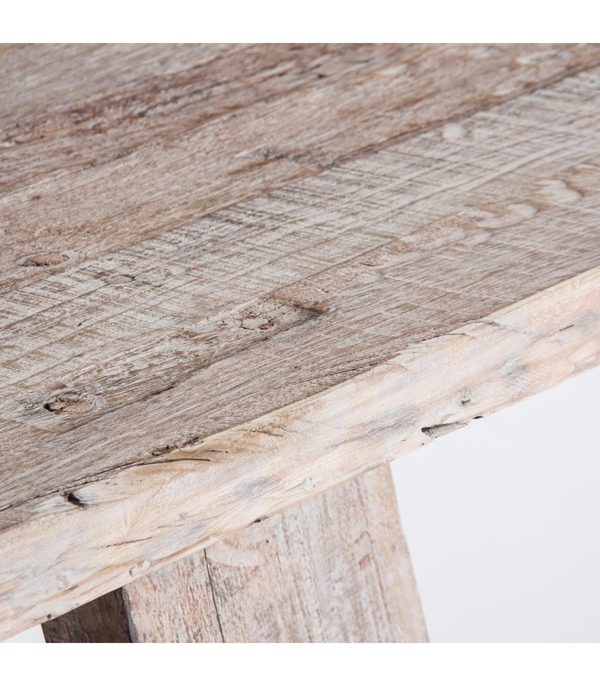 Mesa comedor rectangular hassi de estilo étnico fabricado en madera de mango en color blanco roto con acabado envejecido. Producto desmontable.