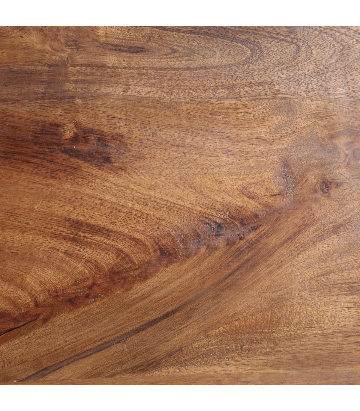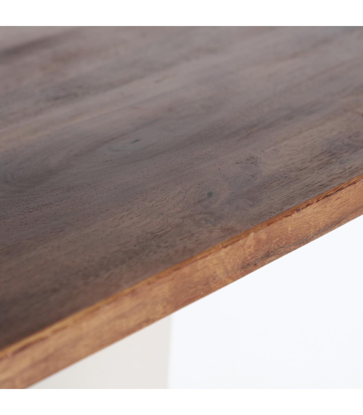 Mesa bar Kilhe de estilo contemporáneo, fabricado en hierro en color beige, combinado con madera de mango en color marrón. Producto desmontable.