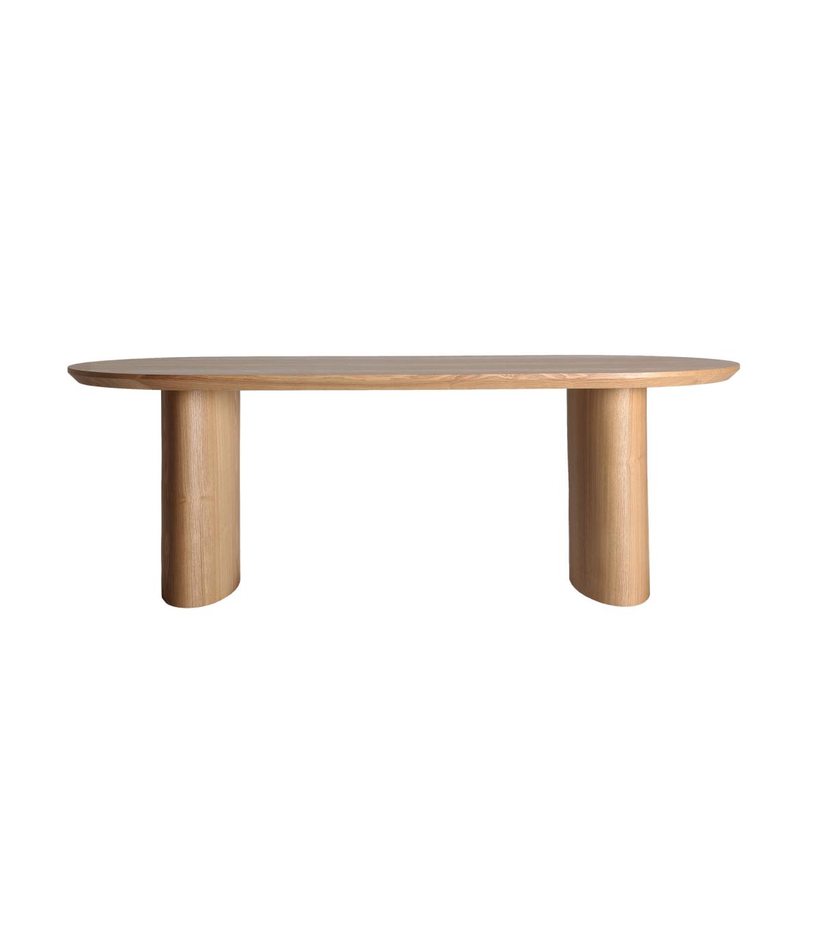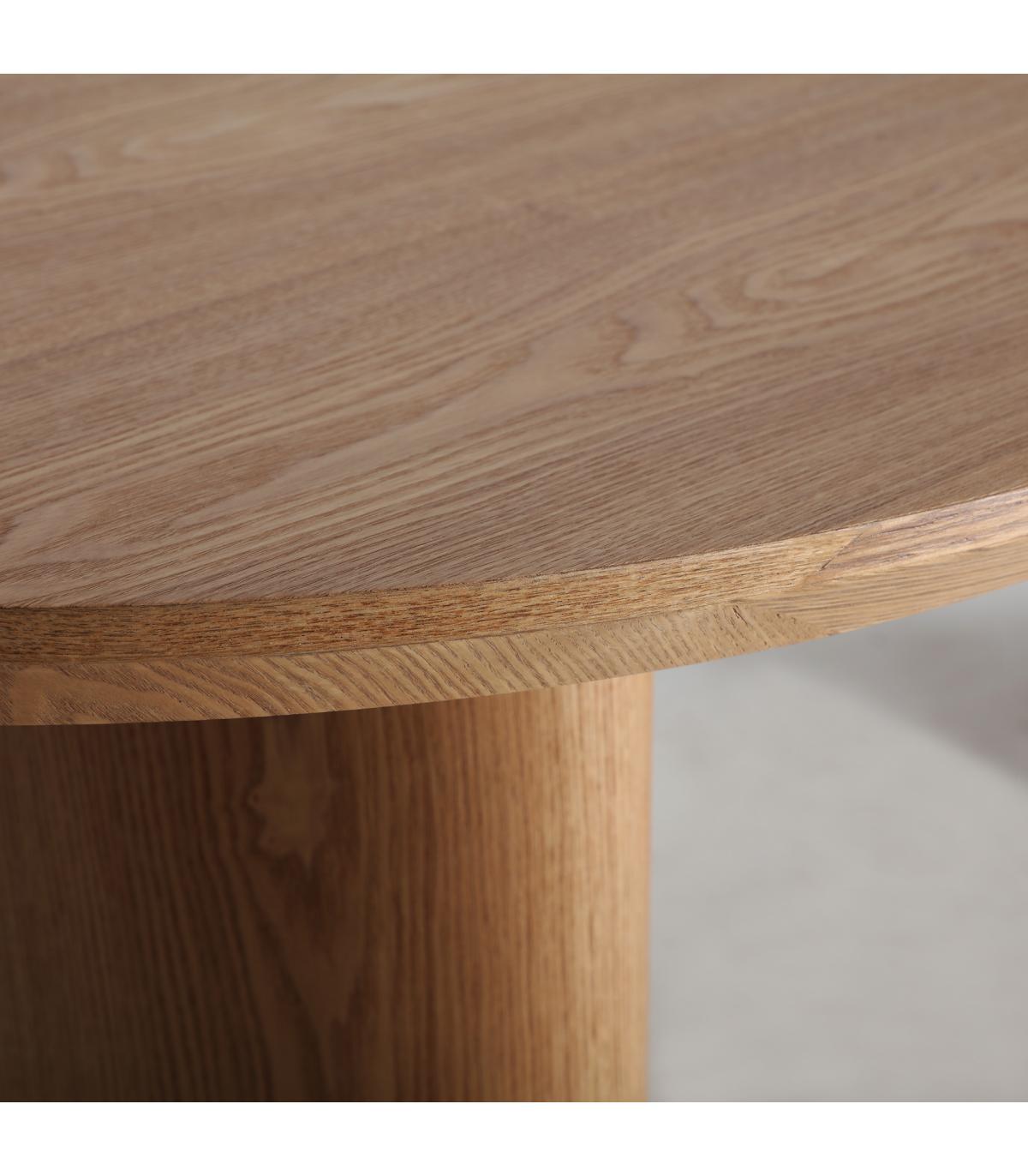 Mesa comedor Soma de estilo contemporáneo, fabricado en madera dm en color marrón, combinado con chapa de nogal. Producto desmontable.