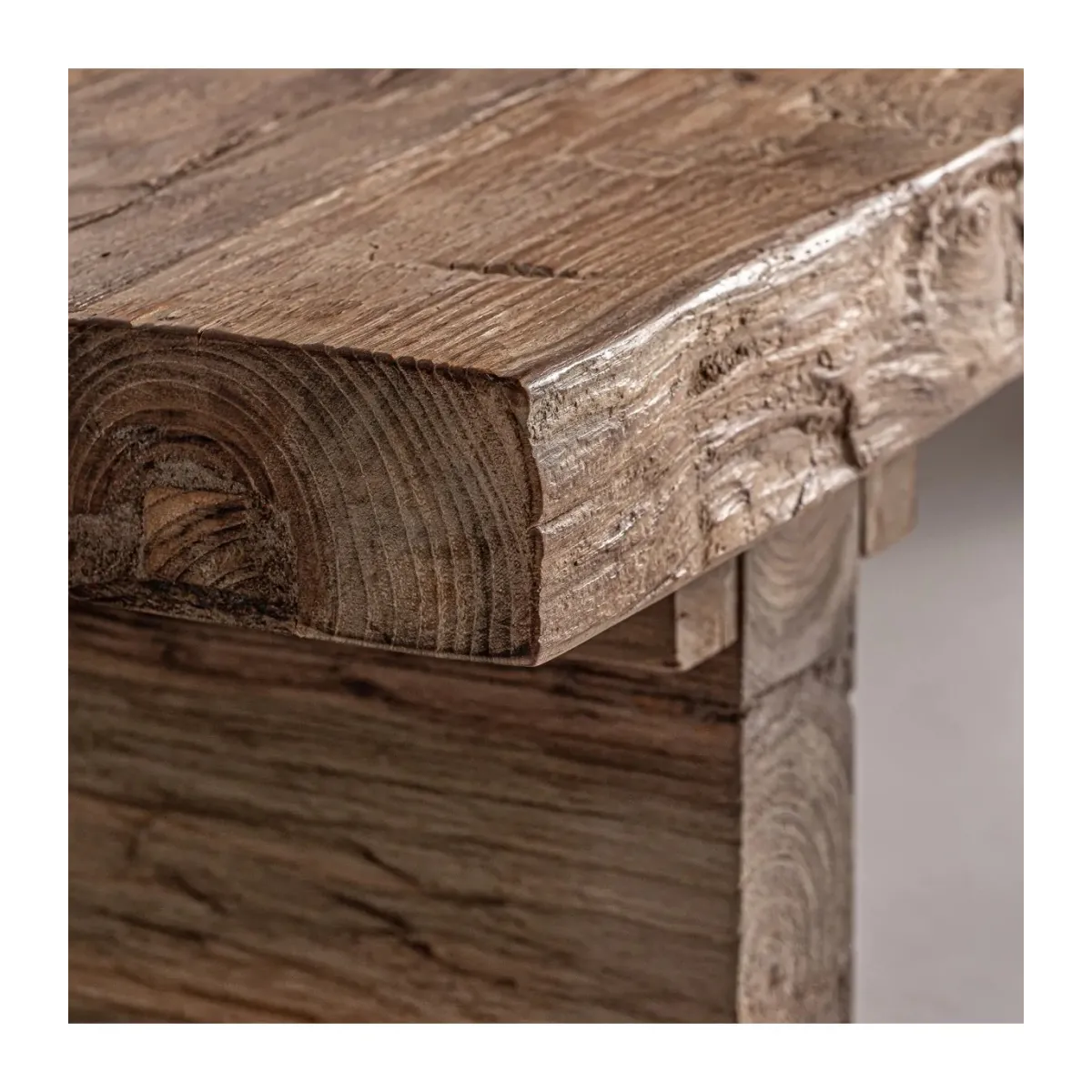 Cada pieza es seleccionada por su veta y textura única, garantizando una durabilidad excepcional y un carácter propio que mejora con el paso del tiempo.