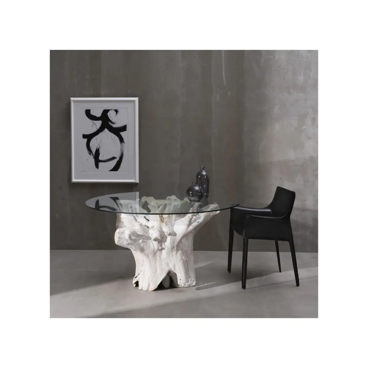 MESA COMEDOR BLANCO ROZADO 140 X 140 X 75 CM Material: madera de teca, cristal.