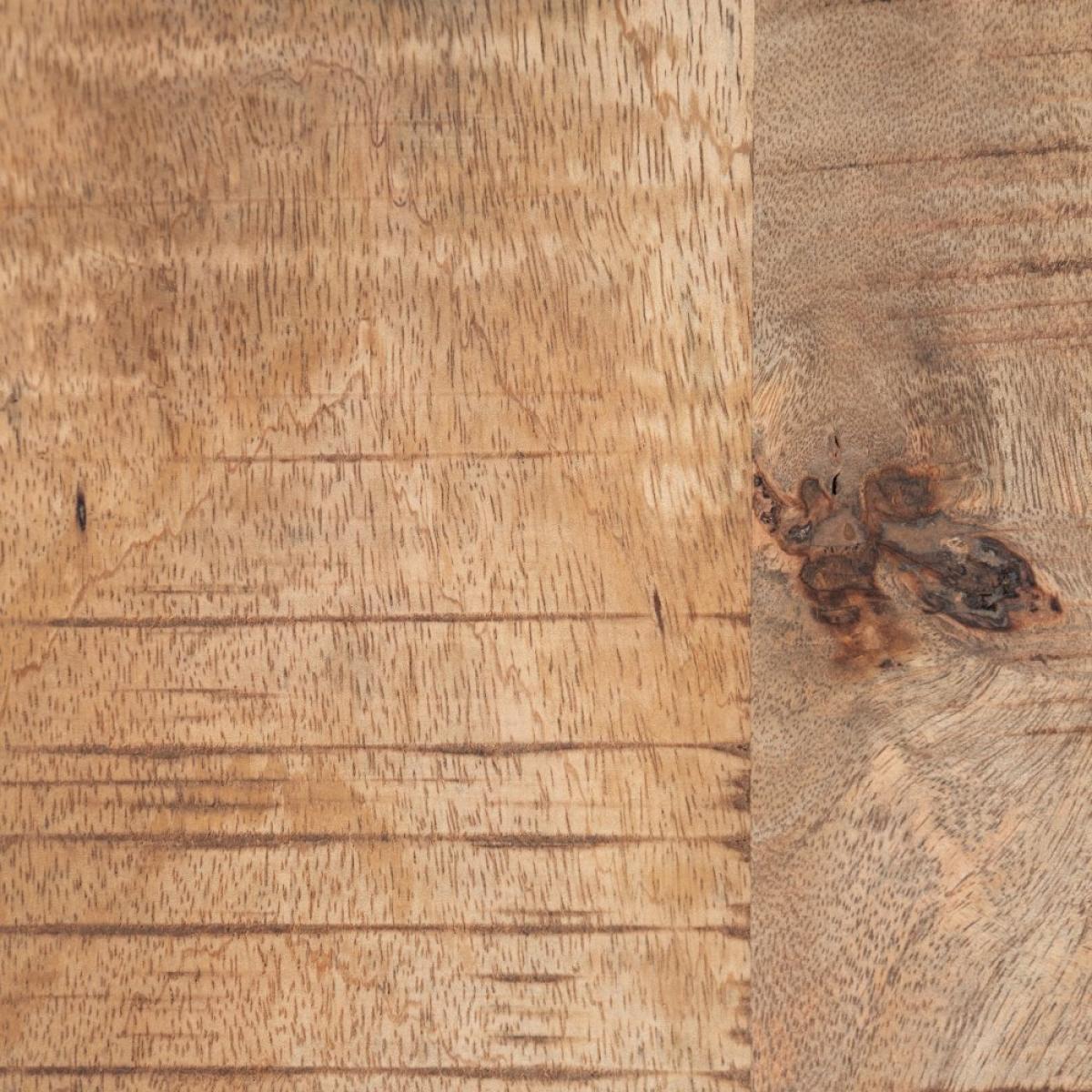 MESA COMEDOR NATURAL-NEGRO 160 X 90 X 76 CM Material: madera de mango, patas de hierro. Grosor del sobre: 6cm. La superficie del sobre puede no ser totalmente lisa debido a su fabricación manual con listones de madera maciza.