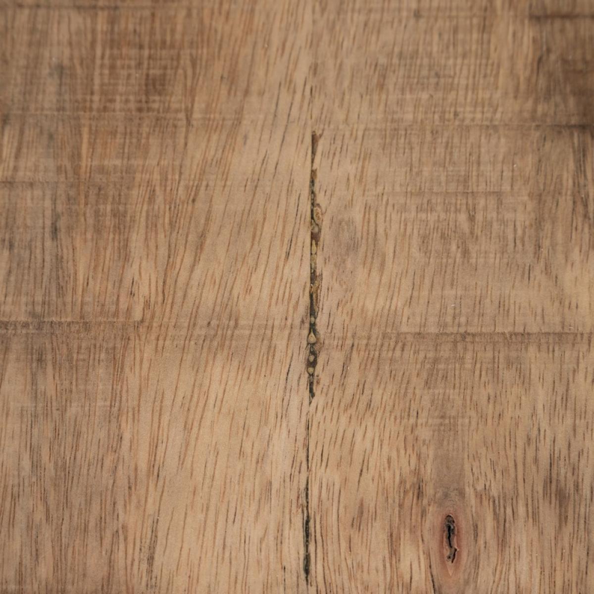 MESA COMEDOR NATURAL-NEGRO 130 X 130 X 76 CM Material: madera de mango, patas de hierro. La superficie del sobre puede no ser totalmente lisa debido a su fabricación manual con listones de madera maciza.