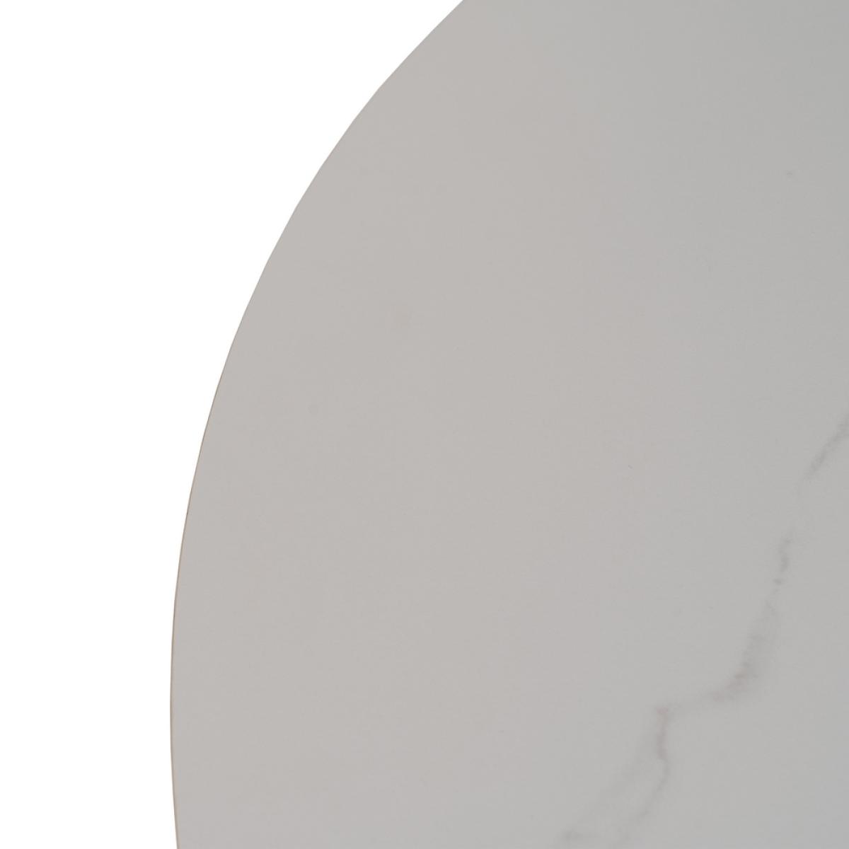 MESA EXTENSIBLE BLANCO-NEGRO 120 X 120 X 75 CM Material: patas de metal (hierro) - top cerámico imitación mármol - Dm. Mesa extensible, largo total 160cm, ancho: 120cm. Grueso tablero: 1.5cm. Para montar.
