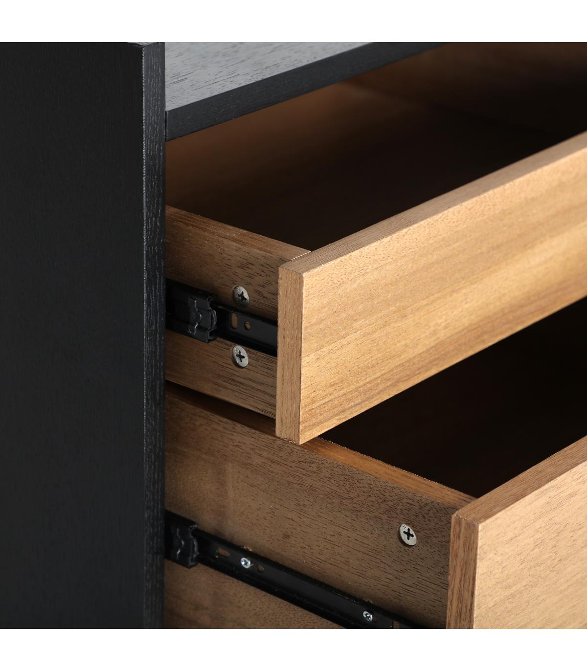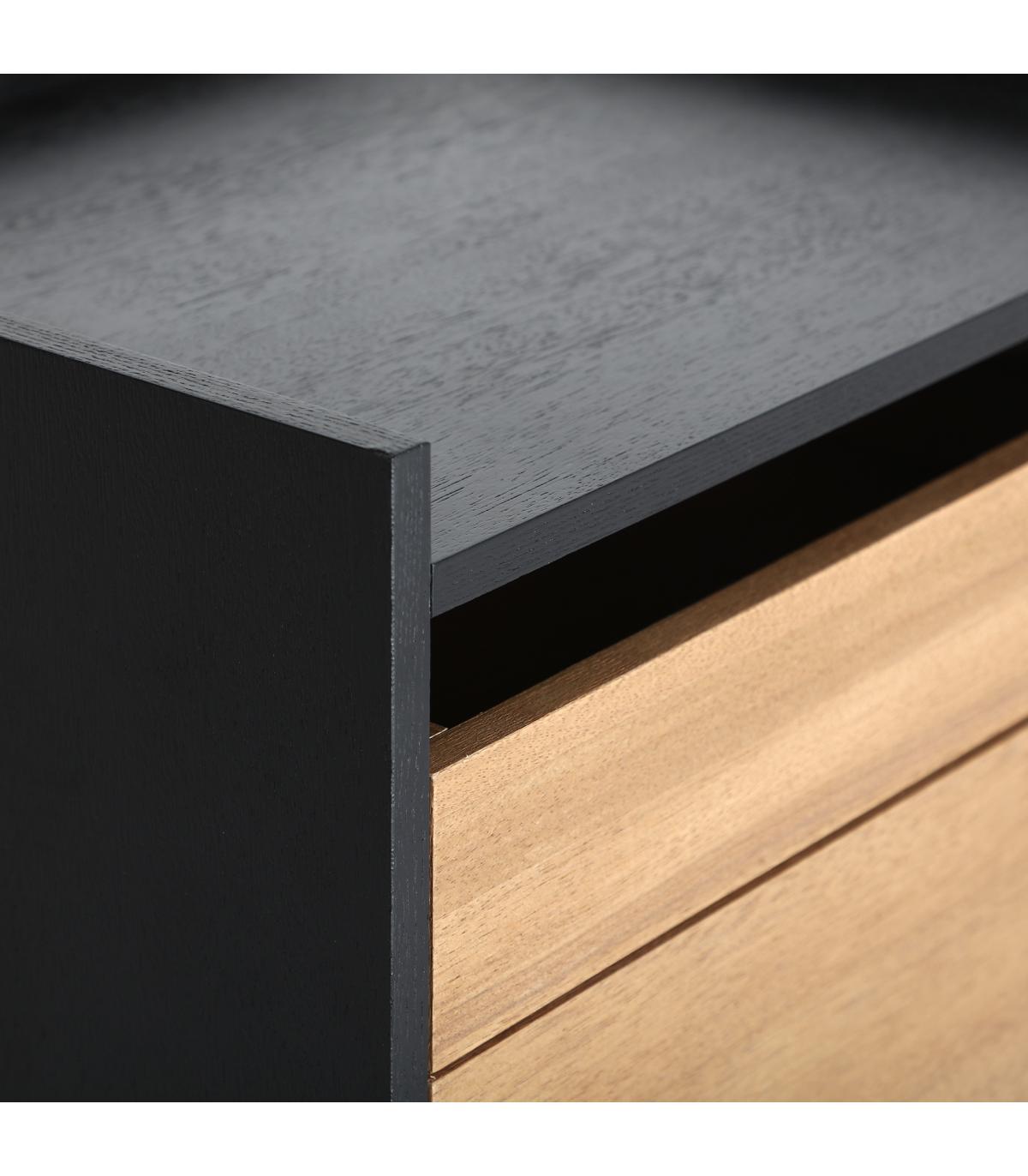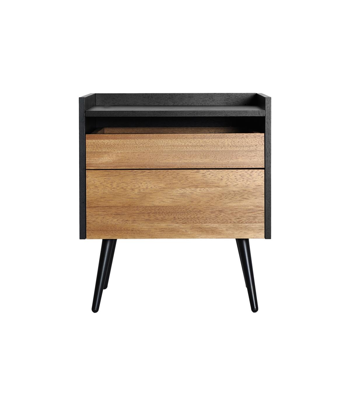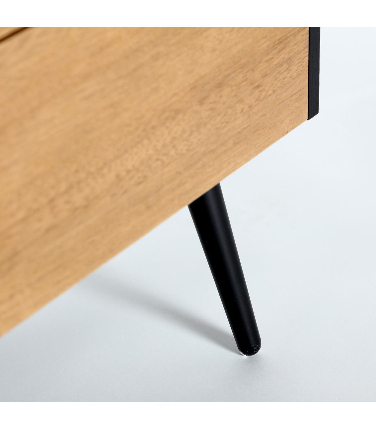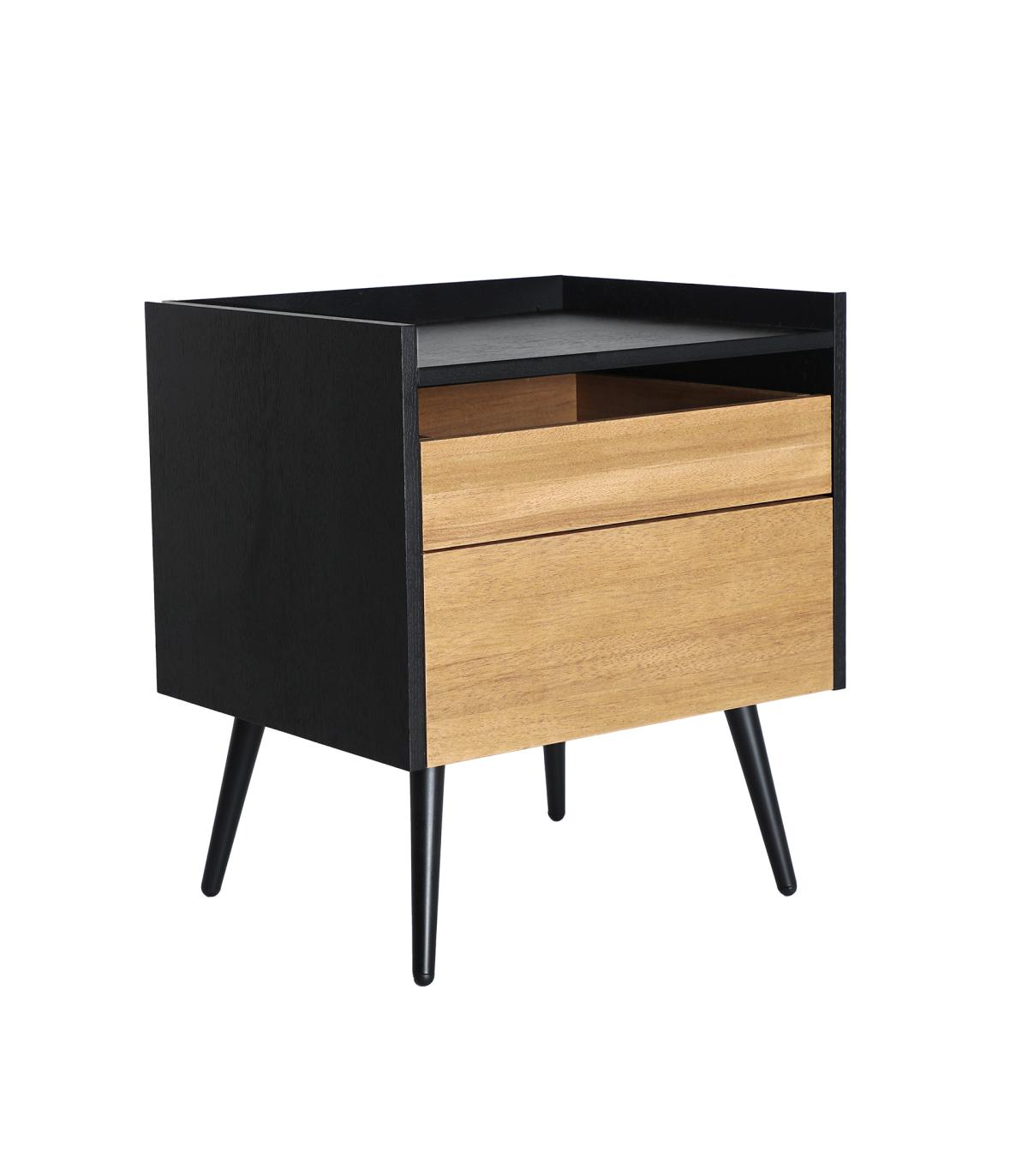 Mesita de noche cuadrada brussa de estilo contemporáneo, fabricado en madera dm en color marrón, combinado con hierro en color negro.