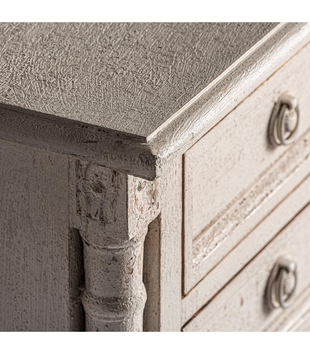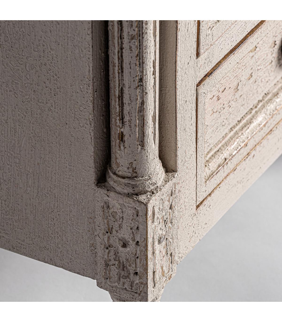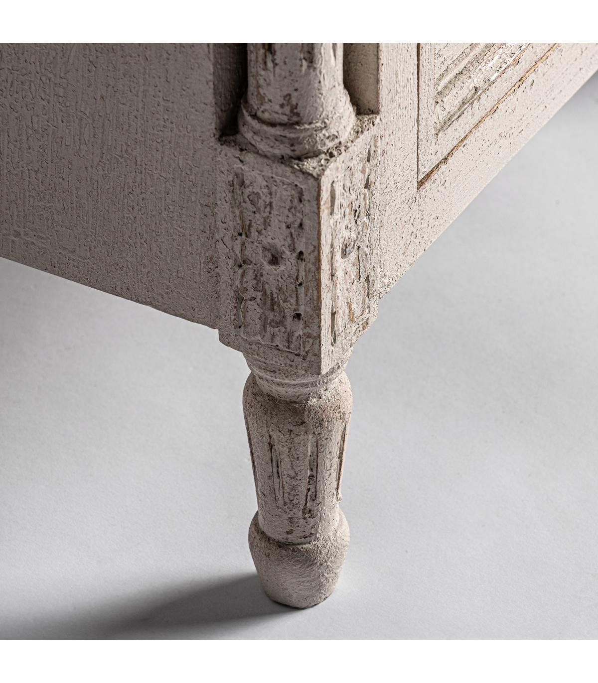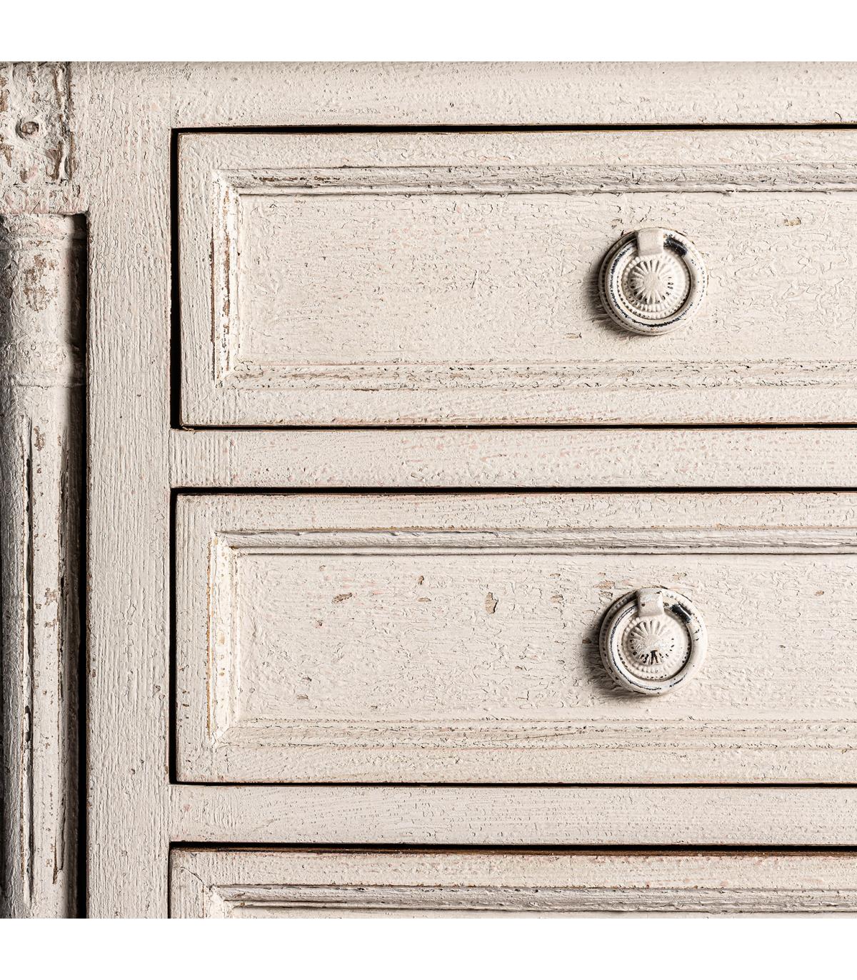 Mesita de noche pisek de estilo provenzal fabricado en madera de mango en color blanco roto.