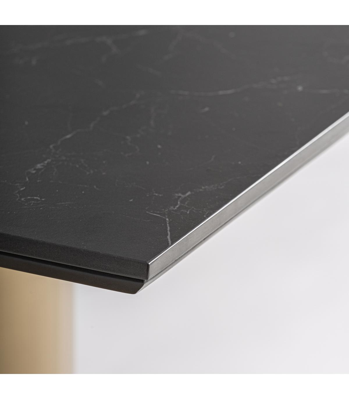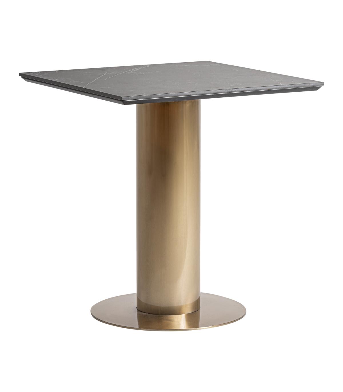 Mesa bar Tasque de estilo art deco fabricado en acero en color oro combinado con porcelánico en color negro.