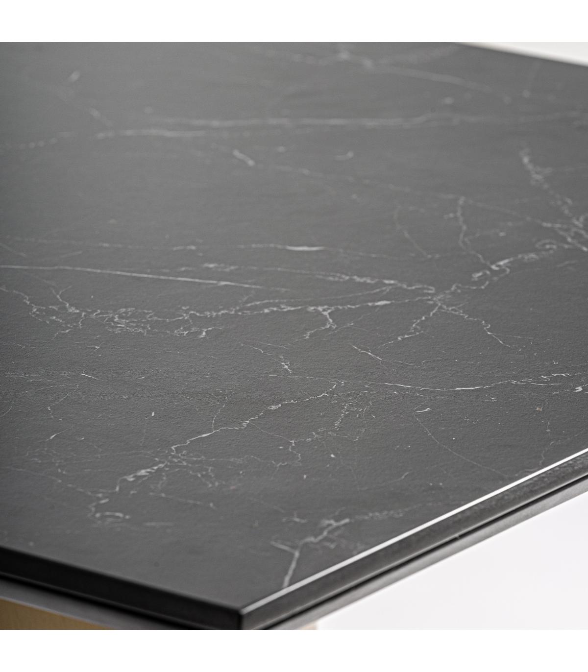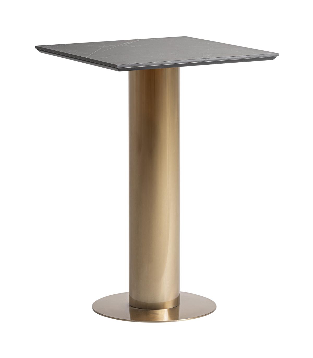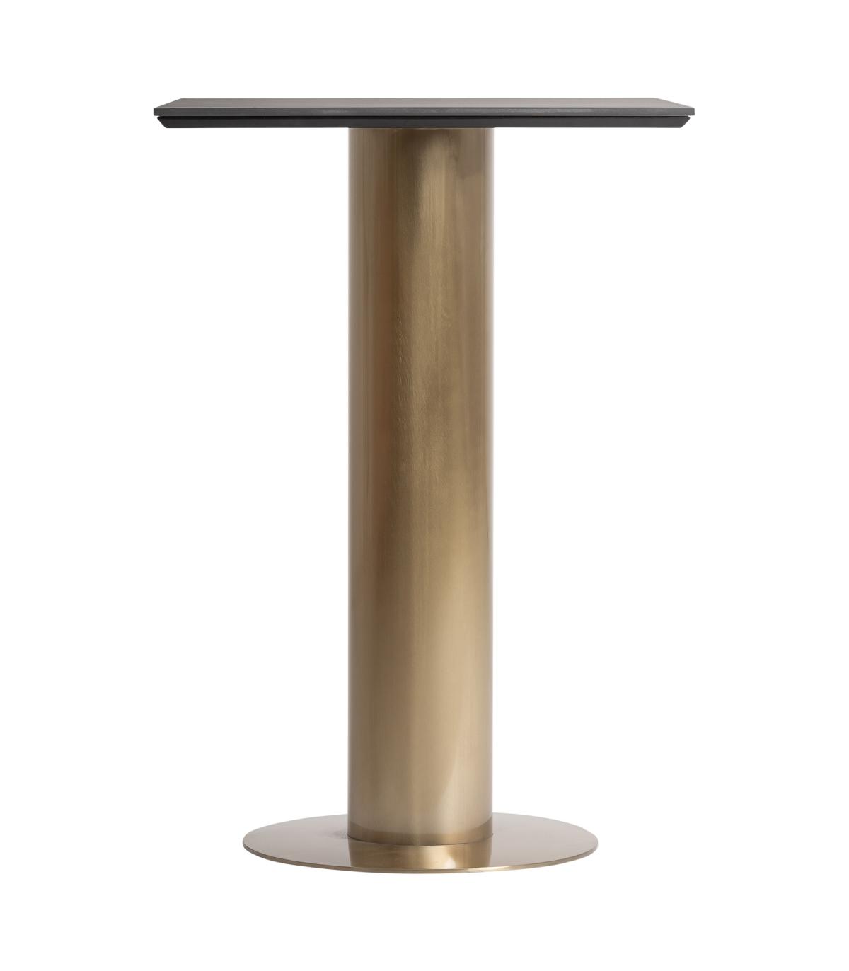 Mesa bar Tasque de estilo art deco fabricado en acero en color oro combinado con porcelánico en color negro. Producto desmontable.