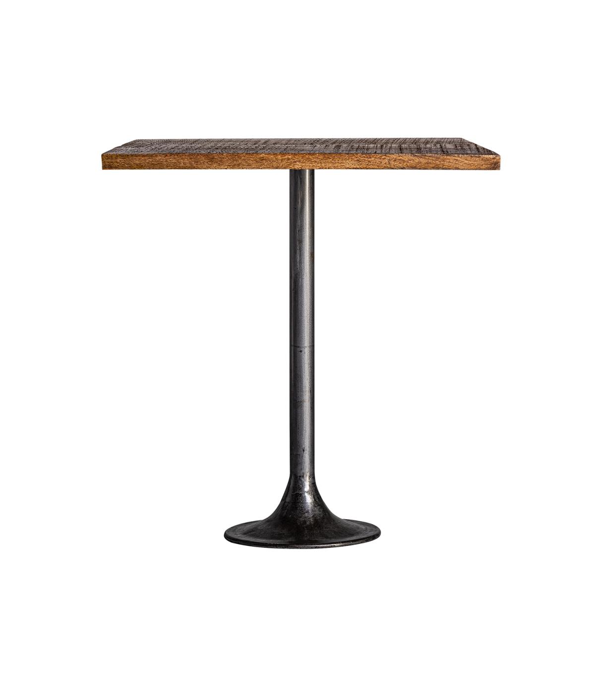 Mesa bar Tyler de estilo colonial fabricado en hierro en color gris combinado con madera de mango en color natural. Producto desmontable.