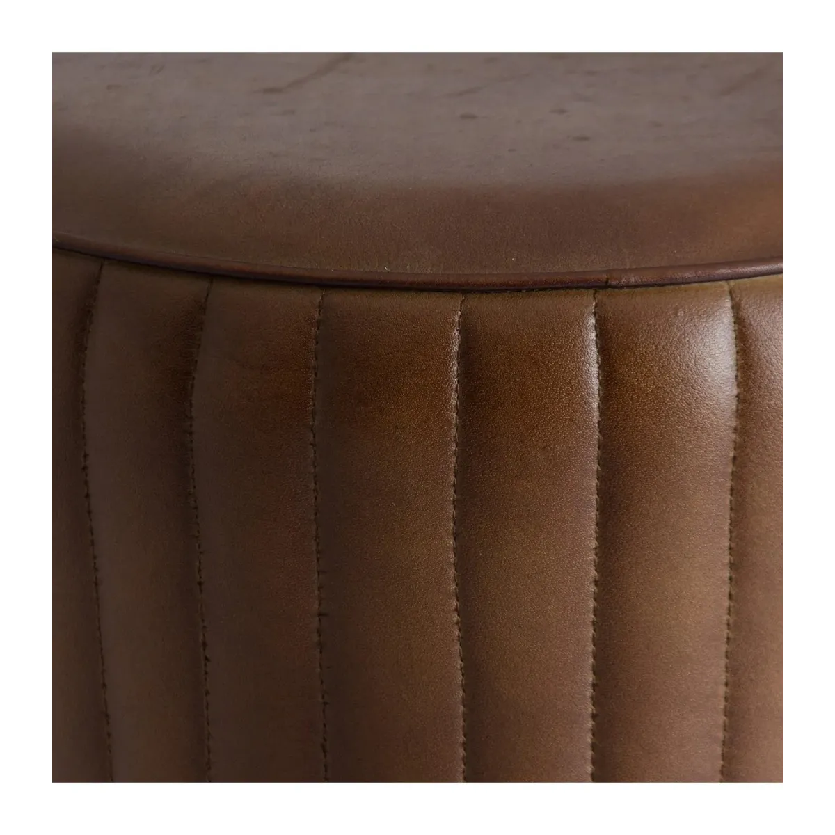 TABURETE SENEY, EN COLOR MARRÓN, DE ESTILO VINTAGE. FABRICADO EN HIERRO, COMBINADO CON CUERO CABRA.