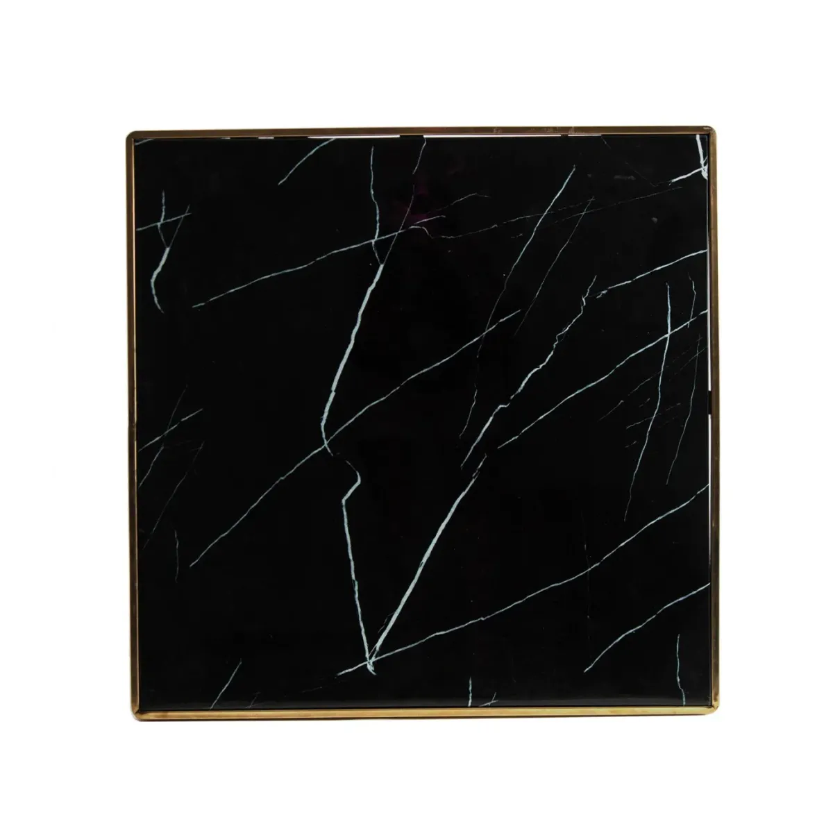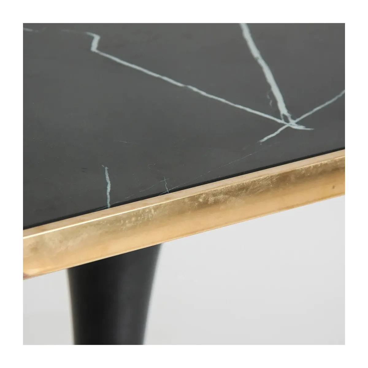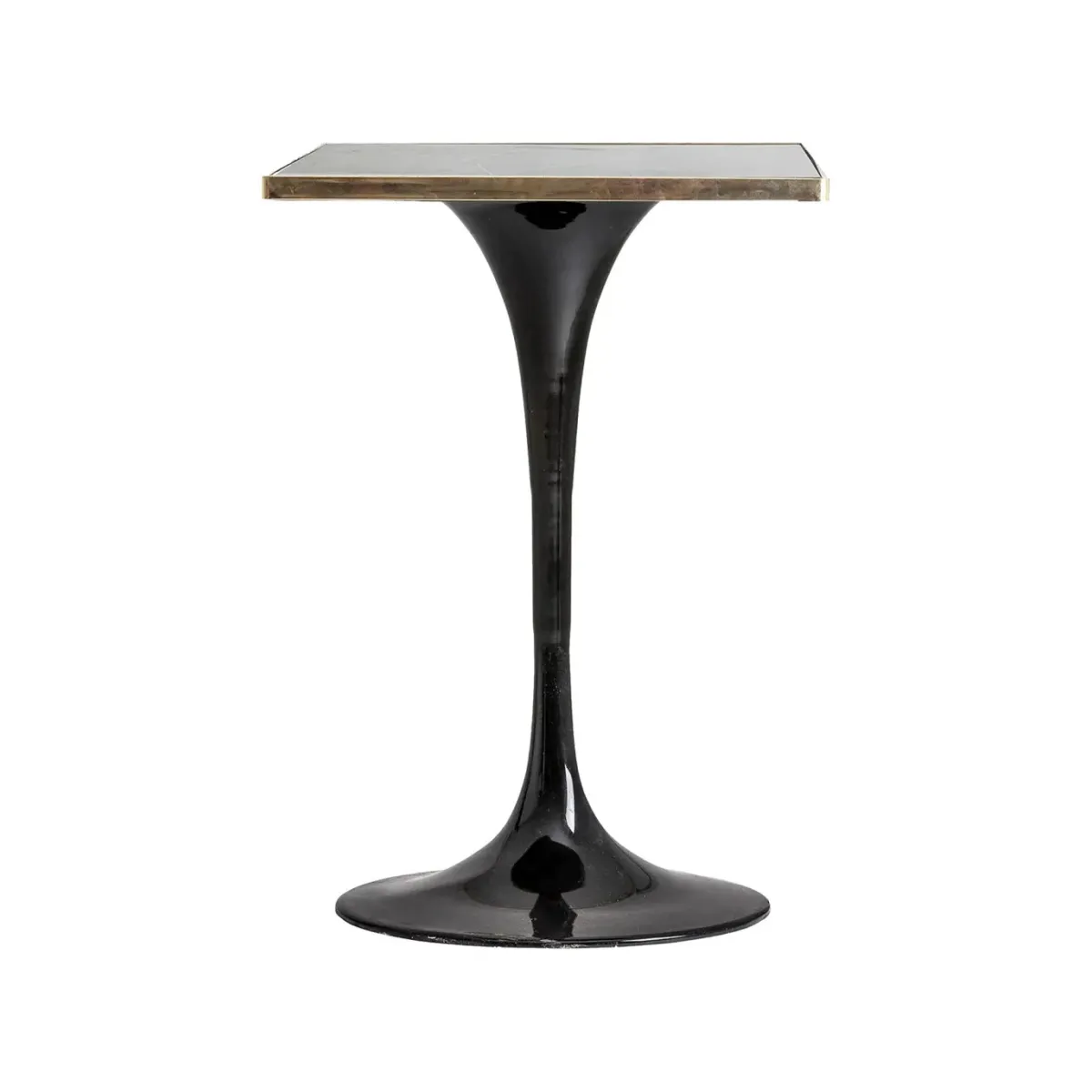 MESA BAR CUADRADA THAN, EN COLOR NEGRO, DE ESTILO ART DECO, COMBINADO CON HIERRO Y ACERO. GRANITO CON ACABADO MÁRMOL. PRODUCTO DESMONTABLE.