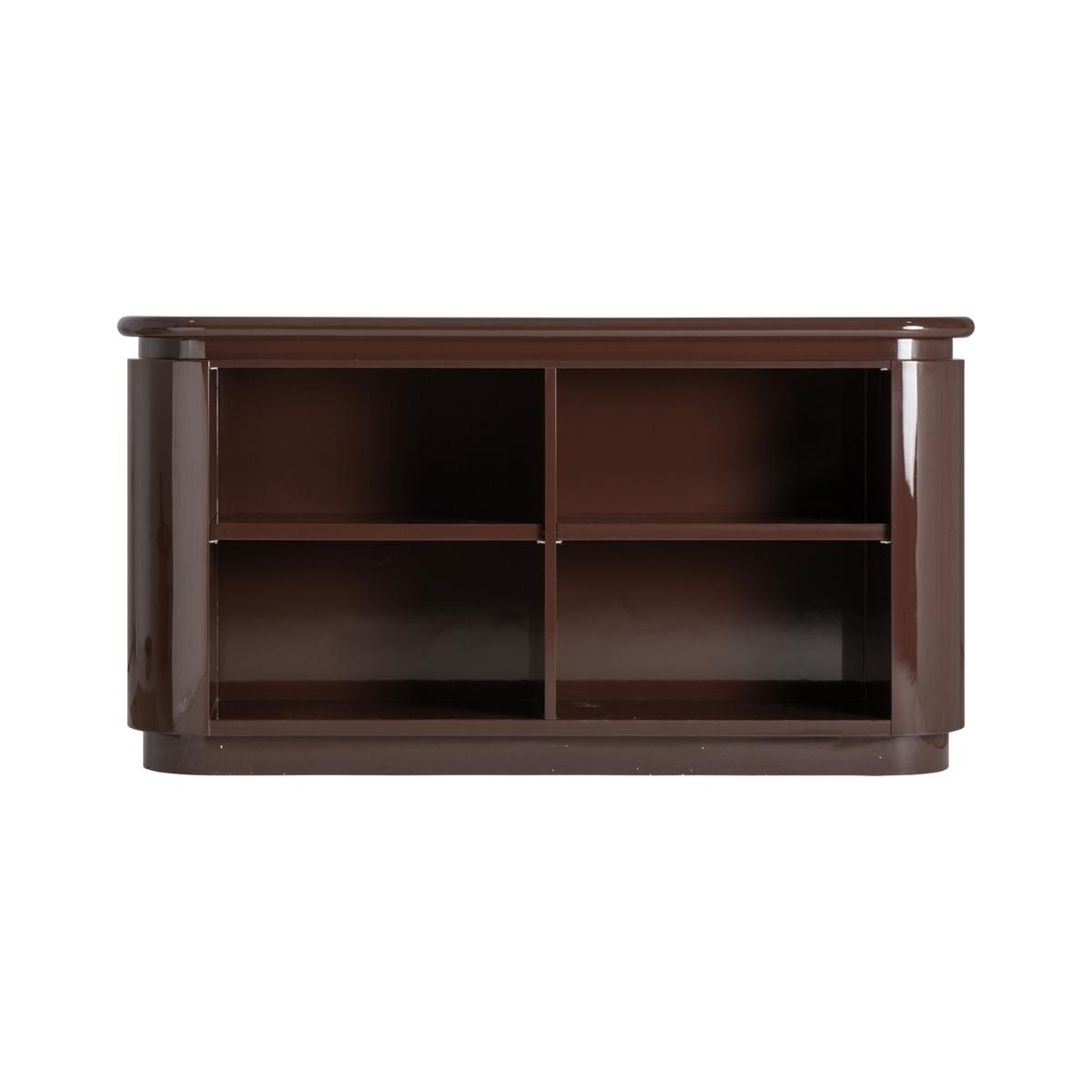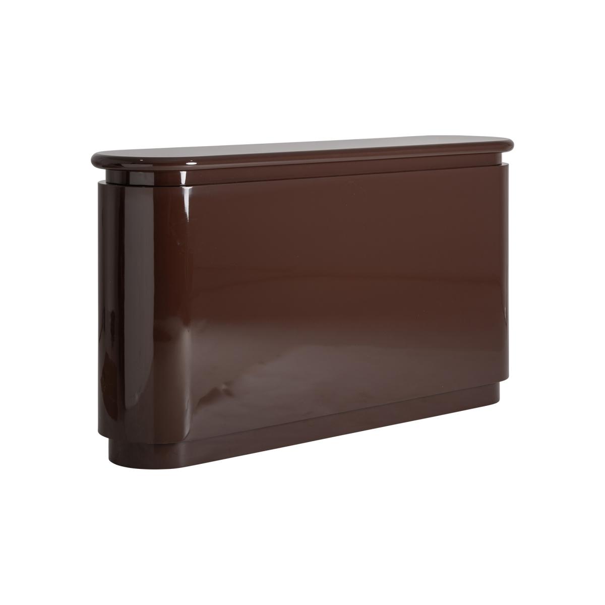 Barra de bar, fabricado en madera dm en color marrón, combinado con madera contrachapada.
