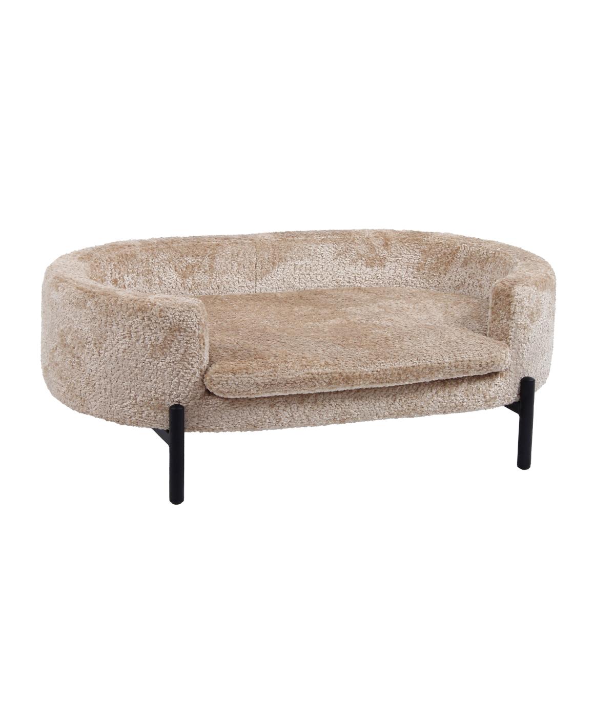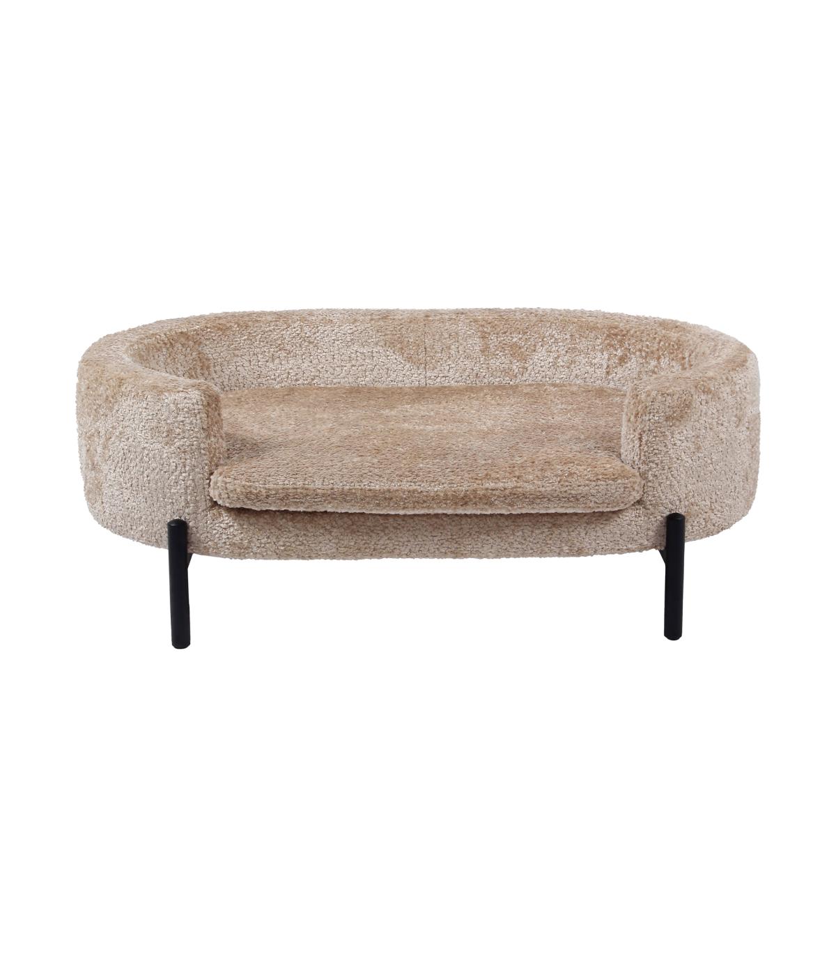 Cama mascotas de estilo clásico, fabricado en poliéster en color marrón, combinado con acero inoxidable en color negro y espuma. Producto desmontable, desenfundable.