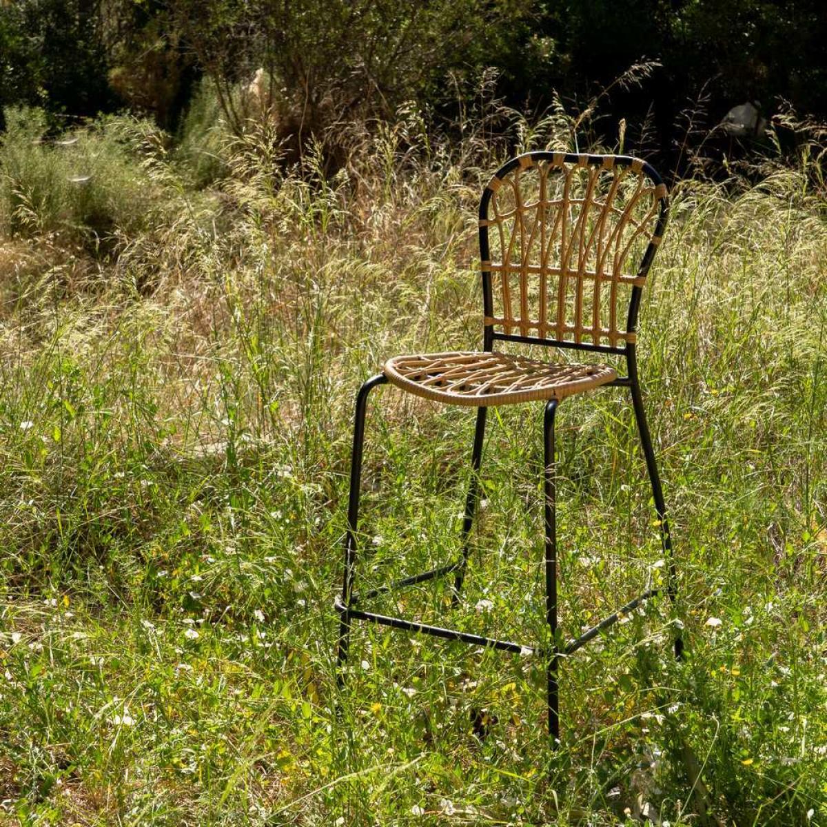 - MUEBLE JARDÍN 611275 - TABURETE NATURAL-NEGRO PE-ACERO SALÓN 60 X 61 X 117 CM