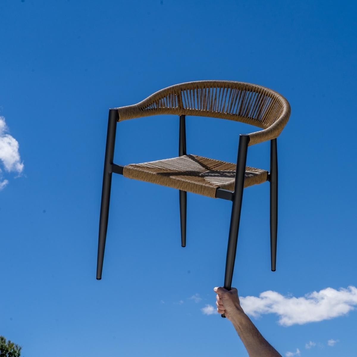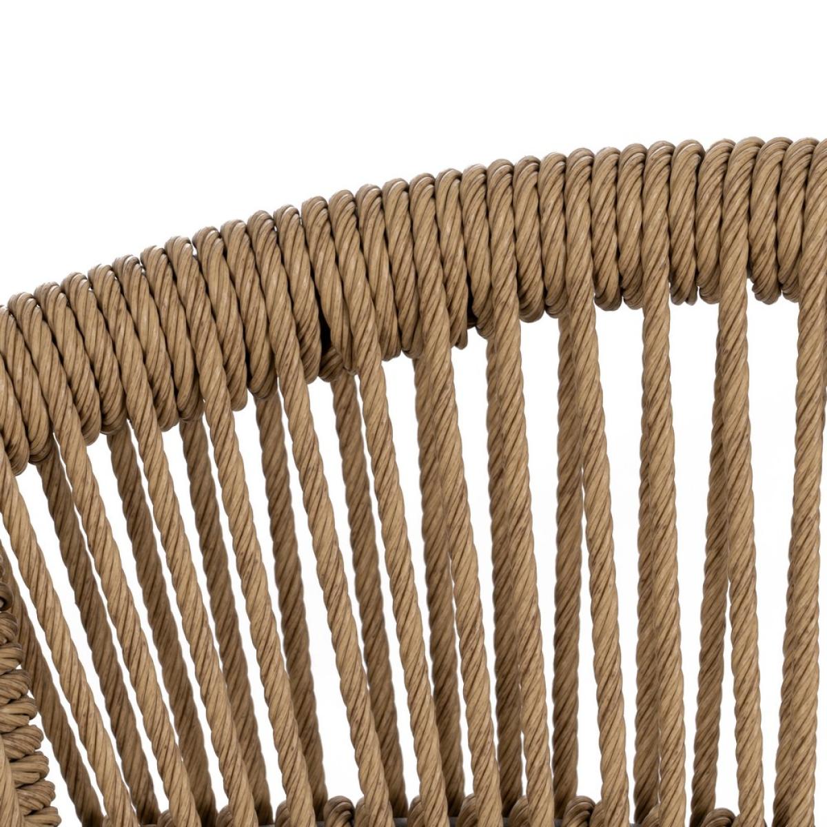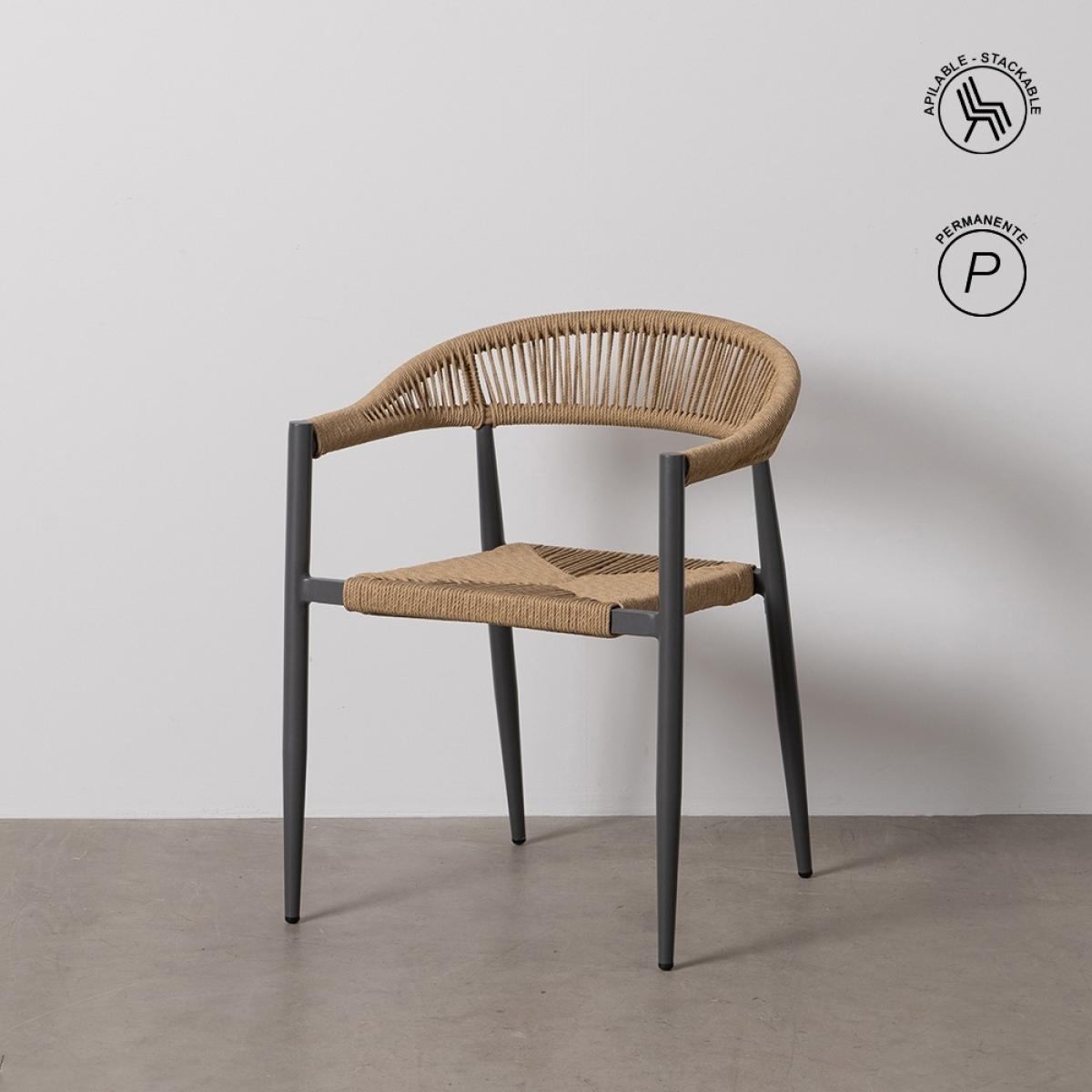SILLA BEIGE-GRIS PE-ALUMINIO SALÓN 57,50 X 56 X 74 CM Material: polietileno, aluminio. Altura asiento: 45cm. Ancho asiento: 46cm. Profundidad asiento: 43cm. Altura respaldo: 31cm. Apilable. Cumple la normativa EN581 (uso exterior).
