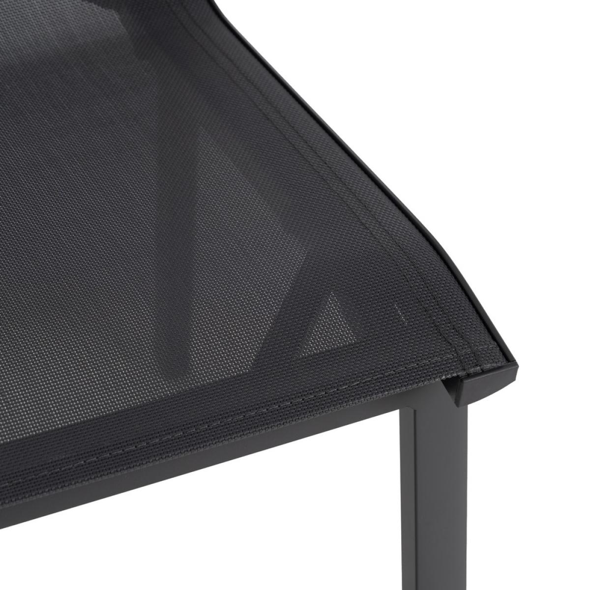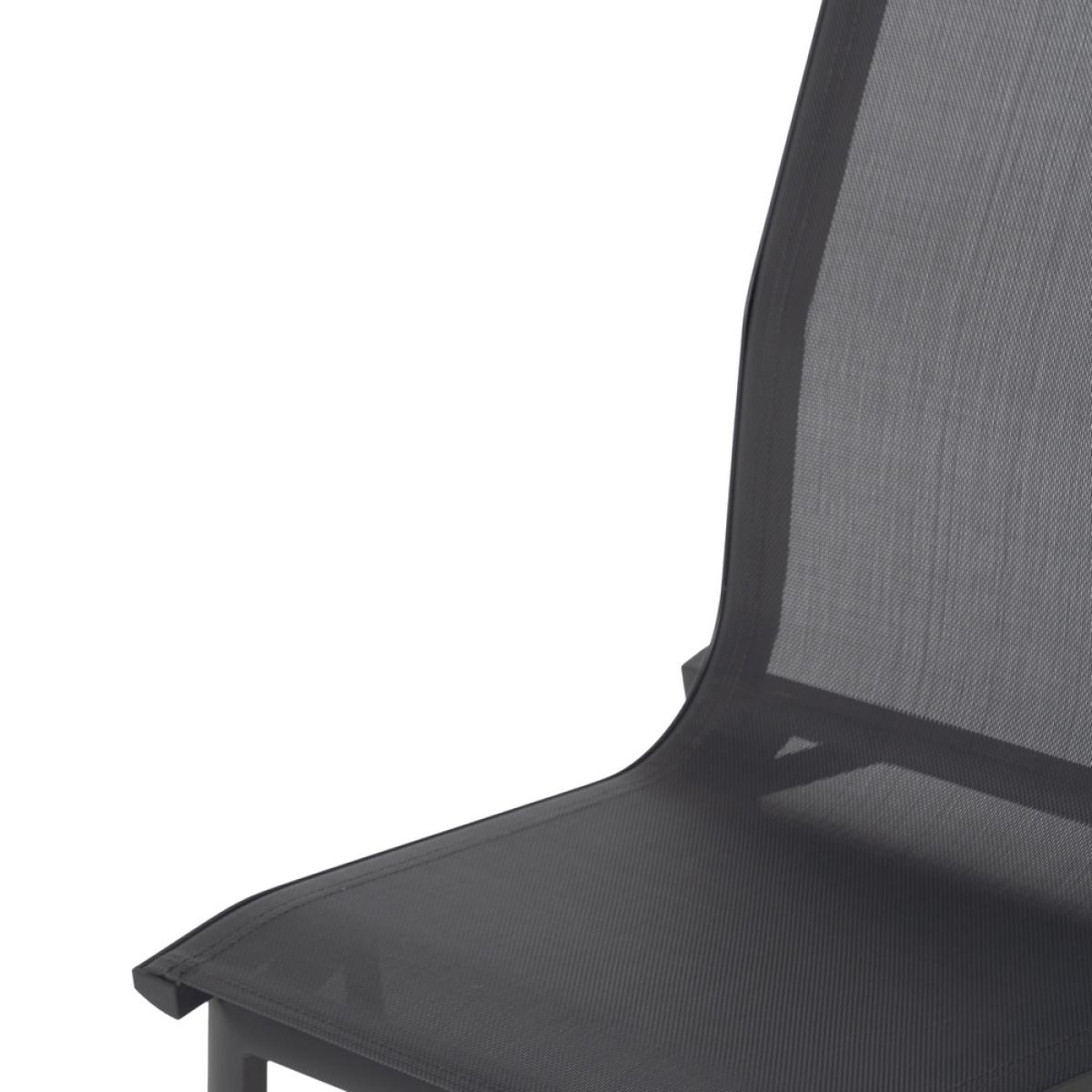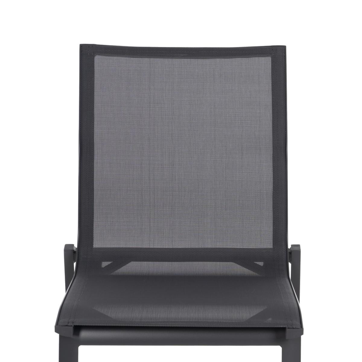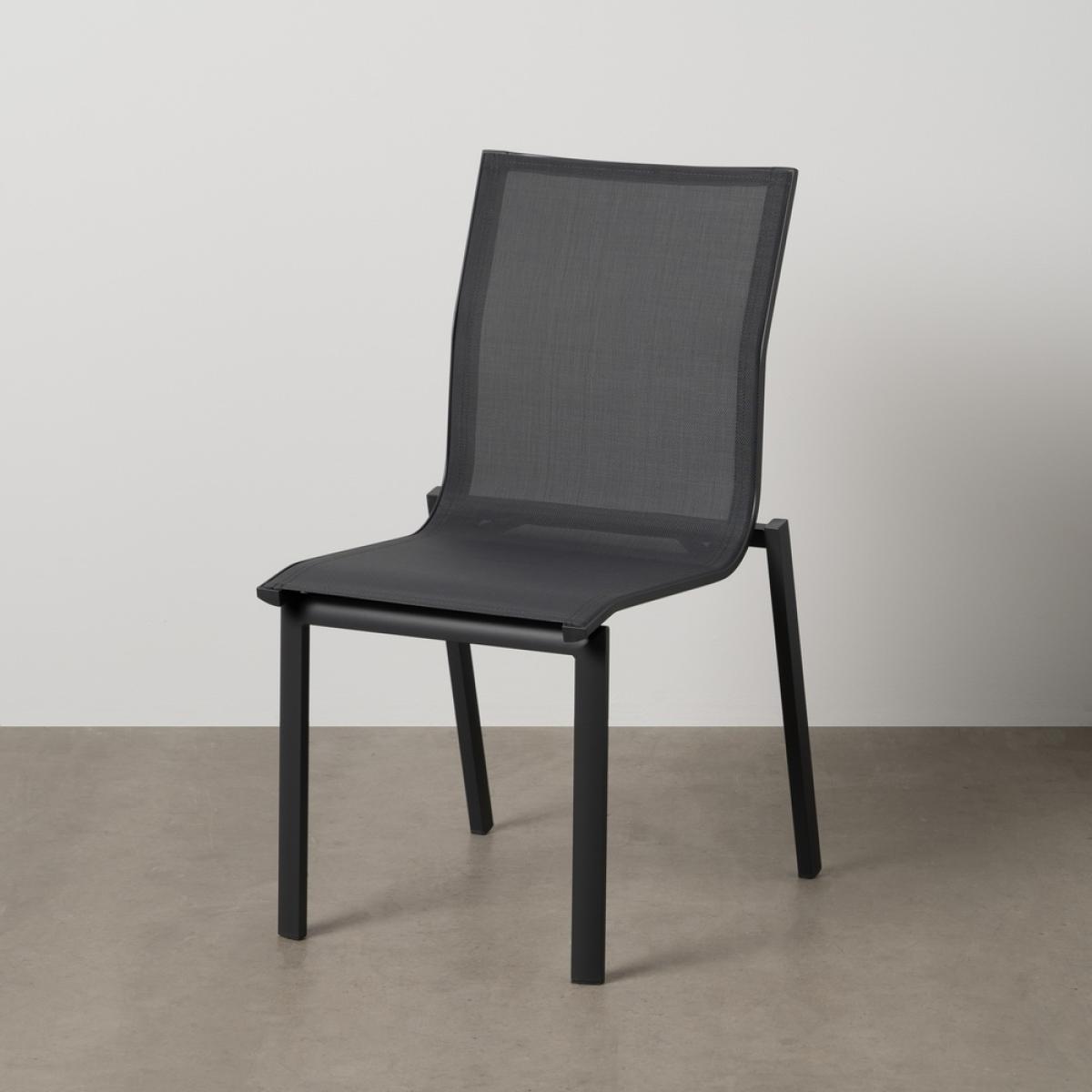 SILLA ALUMINIO-TEXTILENO EXTERIOR 49 X 62 X 90 CM Material: aluminio, textileno (70% PVC, 30% poliéster). Altura asiento: 45cm. Profundidad asiento: 41cm. Ancho asiento: 43,5cm. Altura respaldo: 45cm. Apilable. Cumple la normativa EN581 (uso exterior).