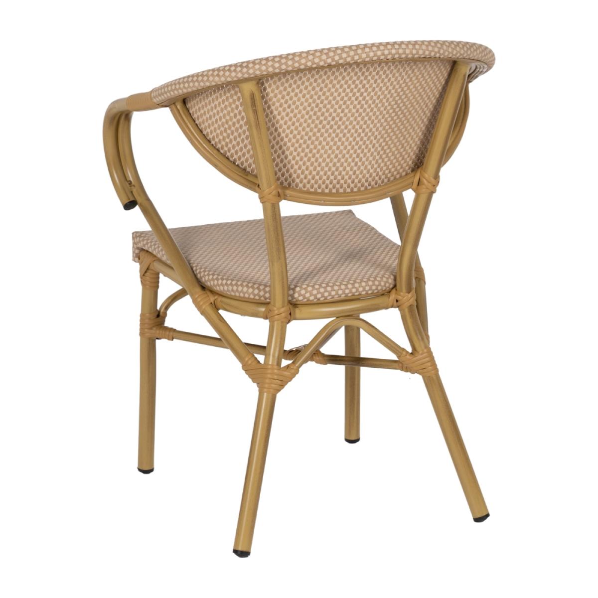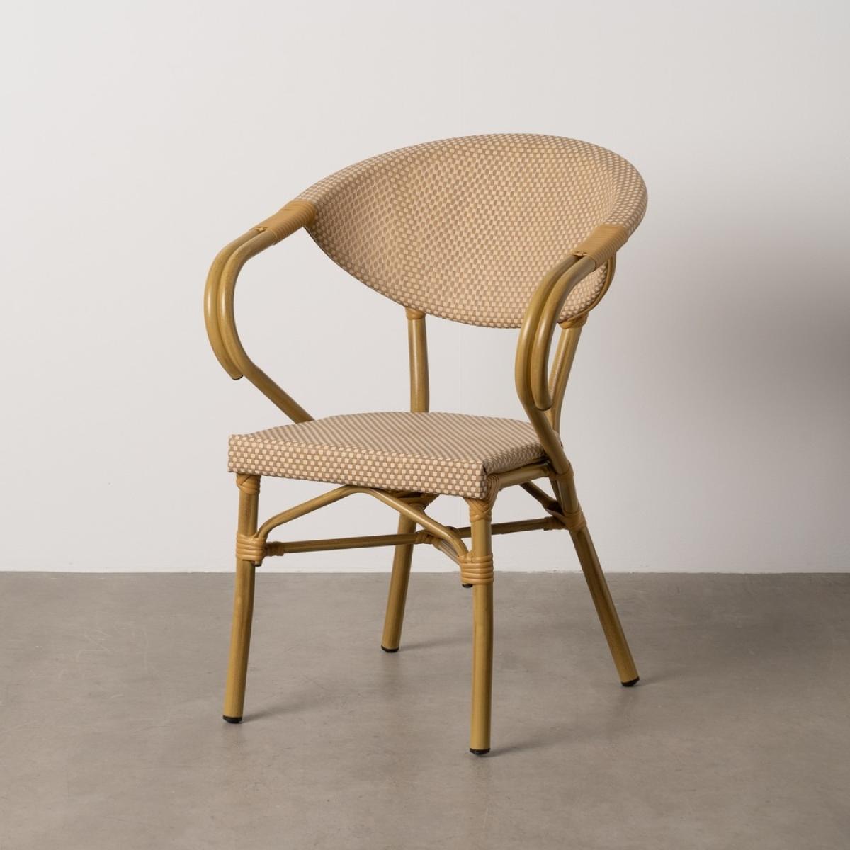 SILLA BEIGE ALUMINIO-TEXTILENO EXTERIOR 57 X 58,50 X 82 CM Material: aluminio, textileno. Altura asiento: 43cm. Ancho asiento: 40cm. Profundidad asiento: 42cm. Altura respaldo: 43cm. Altura reposabrazos: 28cm (71cm desde el suelo). Apilable.