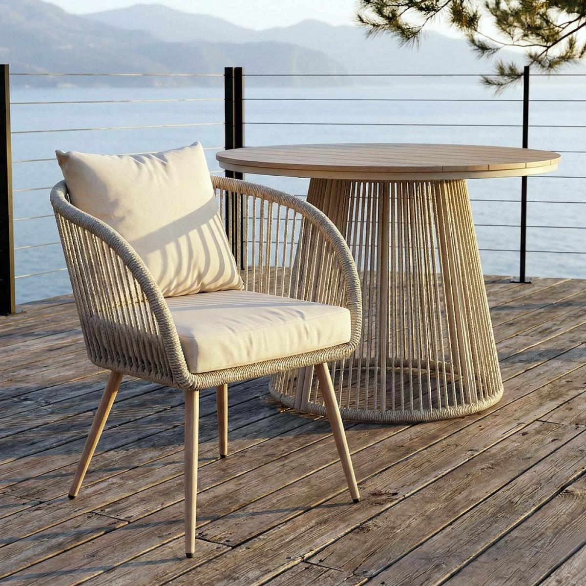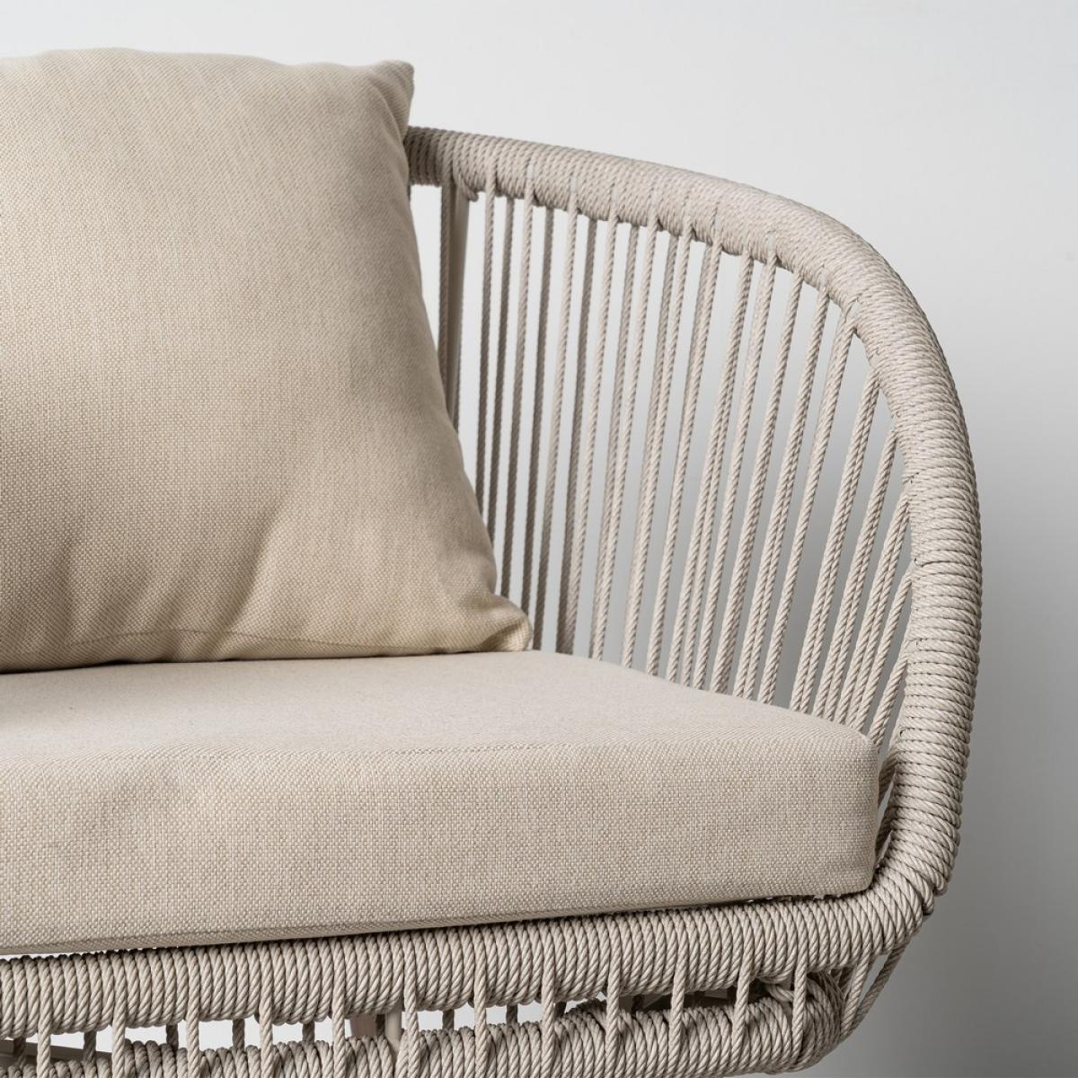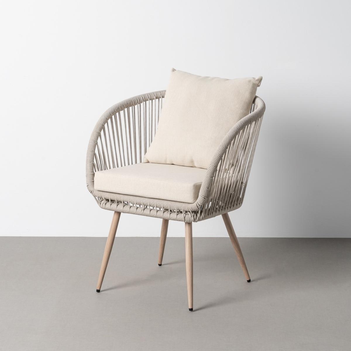 SILLA ACERO-RATTÁN PE EXTERIOR 66 X 65 X 80 CM Material: acero, PE ratán. Altura asiento: 51,5cm. Ancho asiento: 48cm. Profundidad asiento: 40cm. Altura respaldo: 36cm. Altura reposabrazos: 26cm (73,5cm desde el suelo). Tejido 100% olefina. Relleno de foam y polifibra. Cojines desenfundables. Cumple la normativa EN581 (uso exterior). Los muebles y productos de exterior son aptos para permanecer a la intemperie durante la temporada, sin embargo se recomienda colocarlos bajo techado o protegerlos de la lluvia, ya que el tejido no es a prueba de agua. Una vez acabada la temporada, se recomienda guardar o proteger adecuadamente para asegurar su mantenimiento.