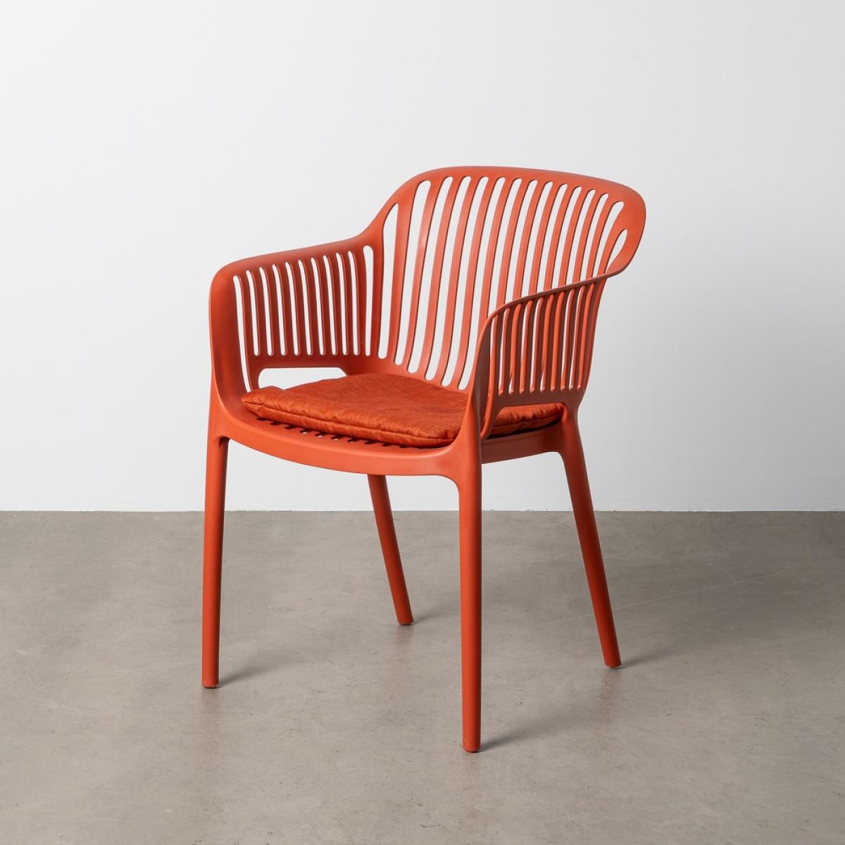 SILLA TERRACOTA POLIPROPILENO EXTERIOR 55 X 61 X 80 CM Material: polipropileno. Altura asiento: 45cm. Ancho asiento: 40cm. Profundidad asiento: 42cm. Altura respaldo: 40cm. Altura reposabrazos: 24cm (67cm desde el suelo). Cojín no desenfundable, tejido a prueba de agua. Cumple la normativa EN12520 (uso doméstico). Apilable.