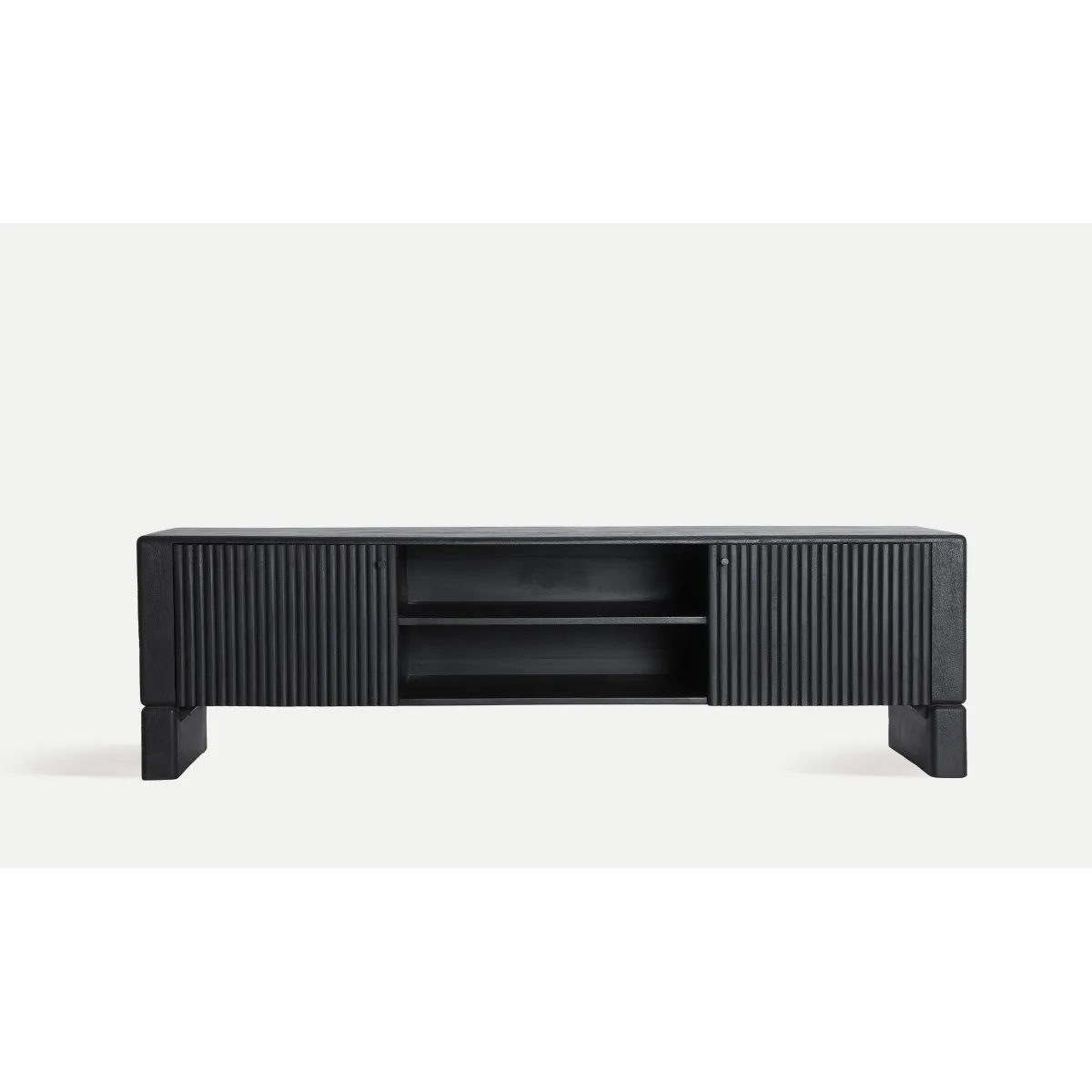 Atmósfera cálida. El Mueble de TV Nox transforma cualquier estancia en un refugio de sofisticación, perfecta para proyectos de interiorismo exigentes.