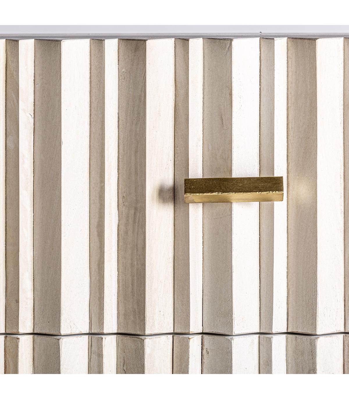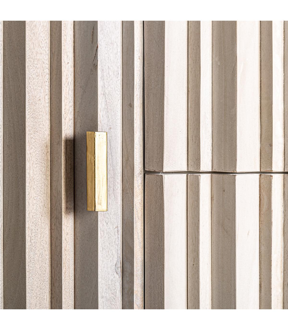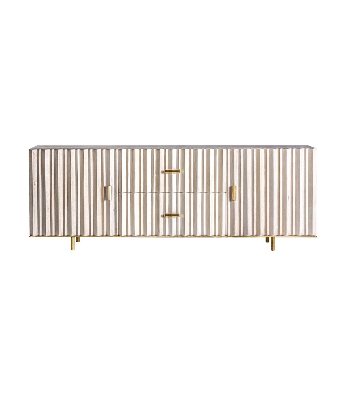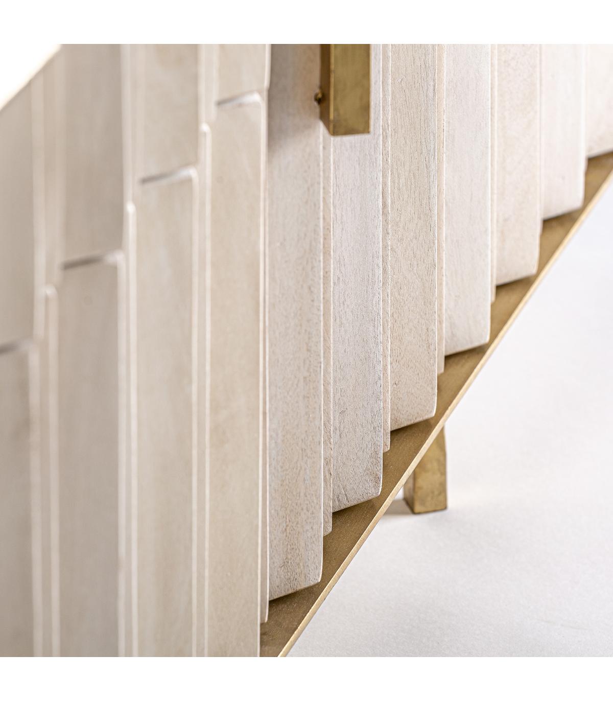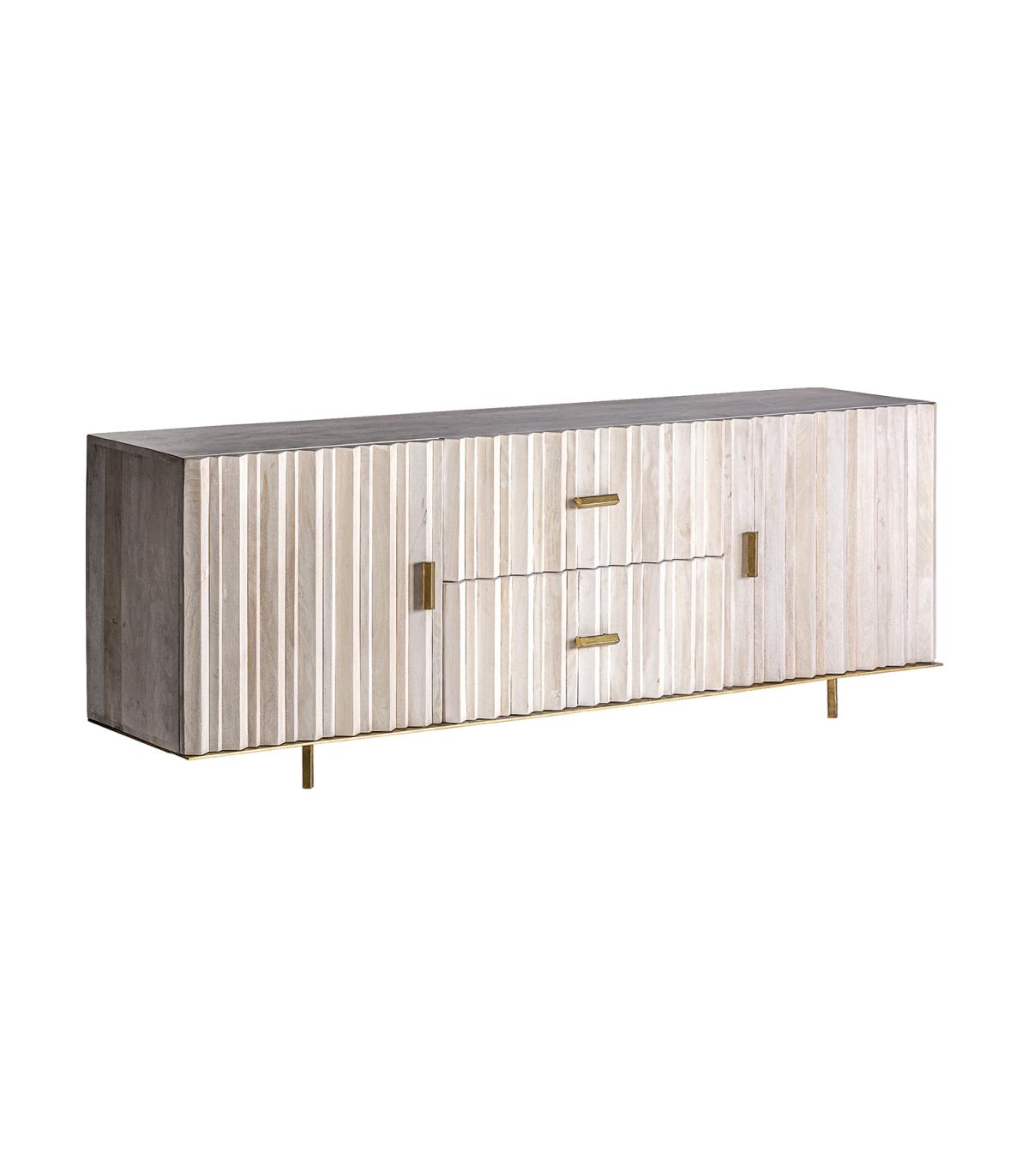 Mueble tv Glees de estilo art deco fabricado en madera de mango en color crema combinado con hierro en color oro.
