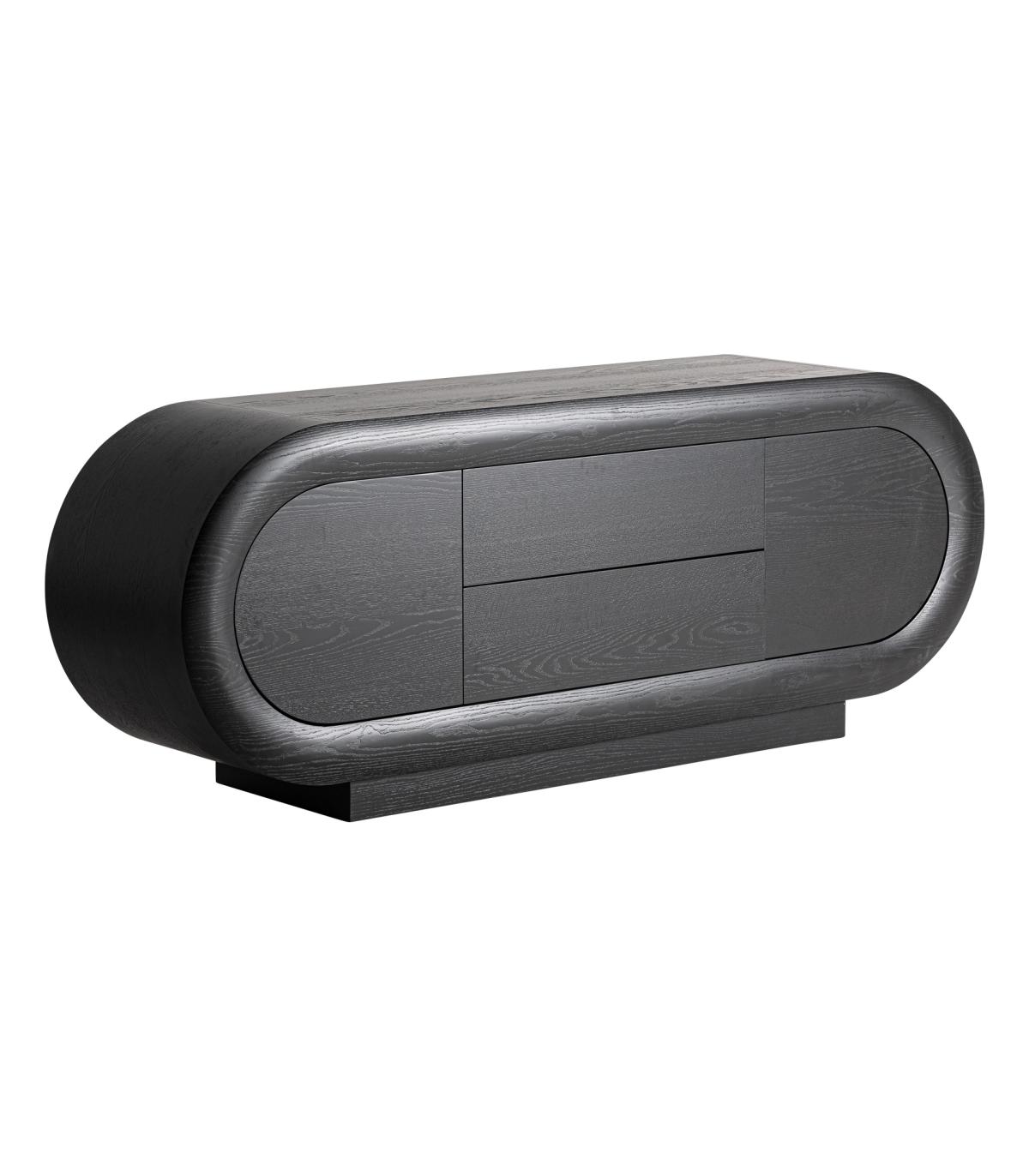 Mueble tv Chamonix de estilo art deco fabricado en madera roble en color negro en color negro.