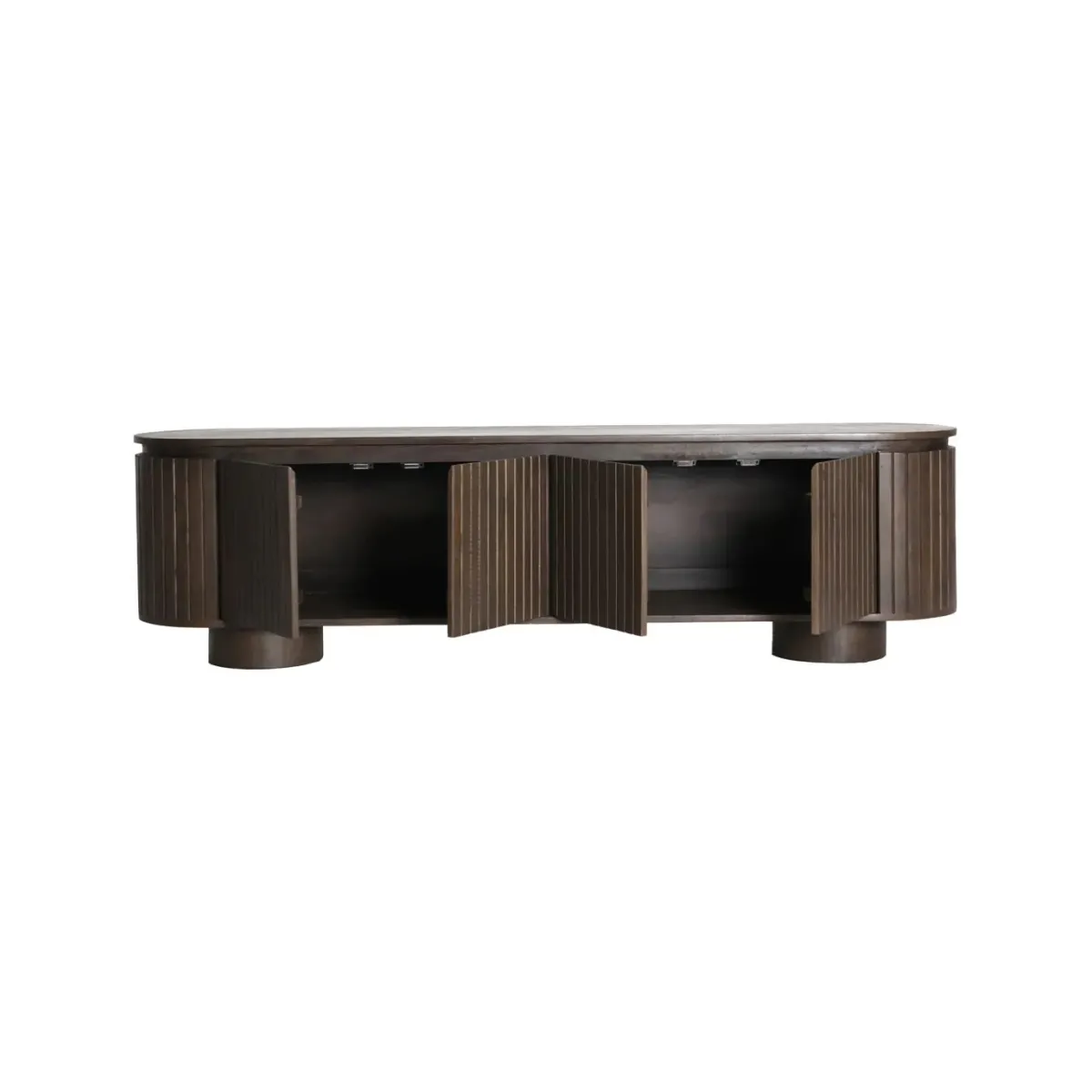 Geometría perfecta. El Mueble de TV Kolga es una pieza magistral que equilibra forma y función, un testimonio de buen gusto y distinción.