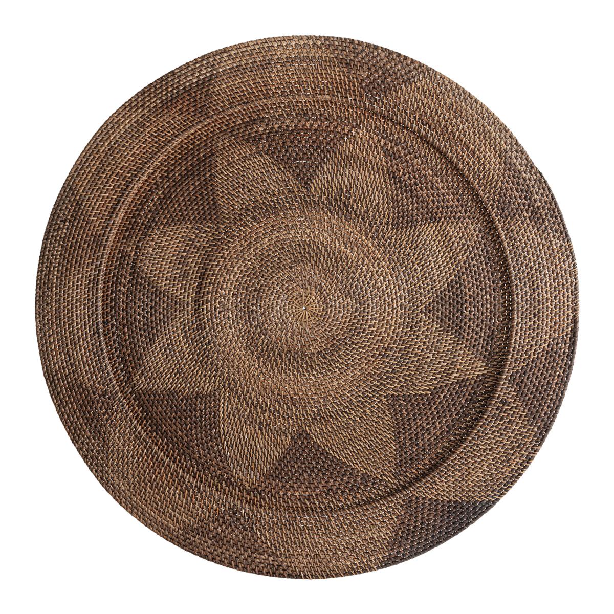 Plato decorativo, en color tonos en marrón, de estilo boho. Fabricado en ratán.