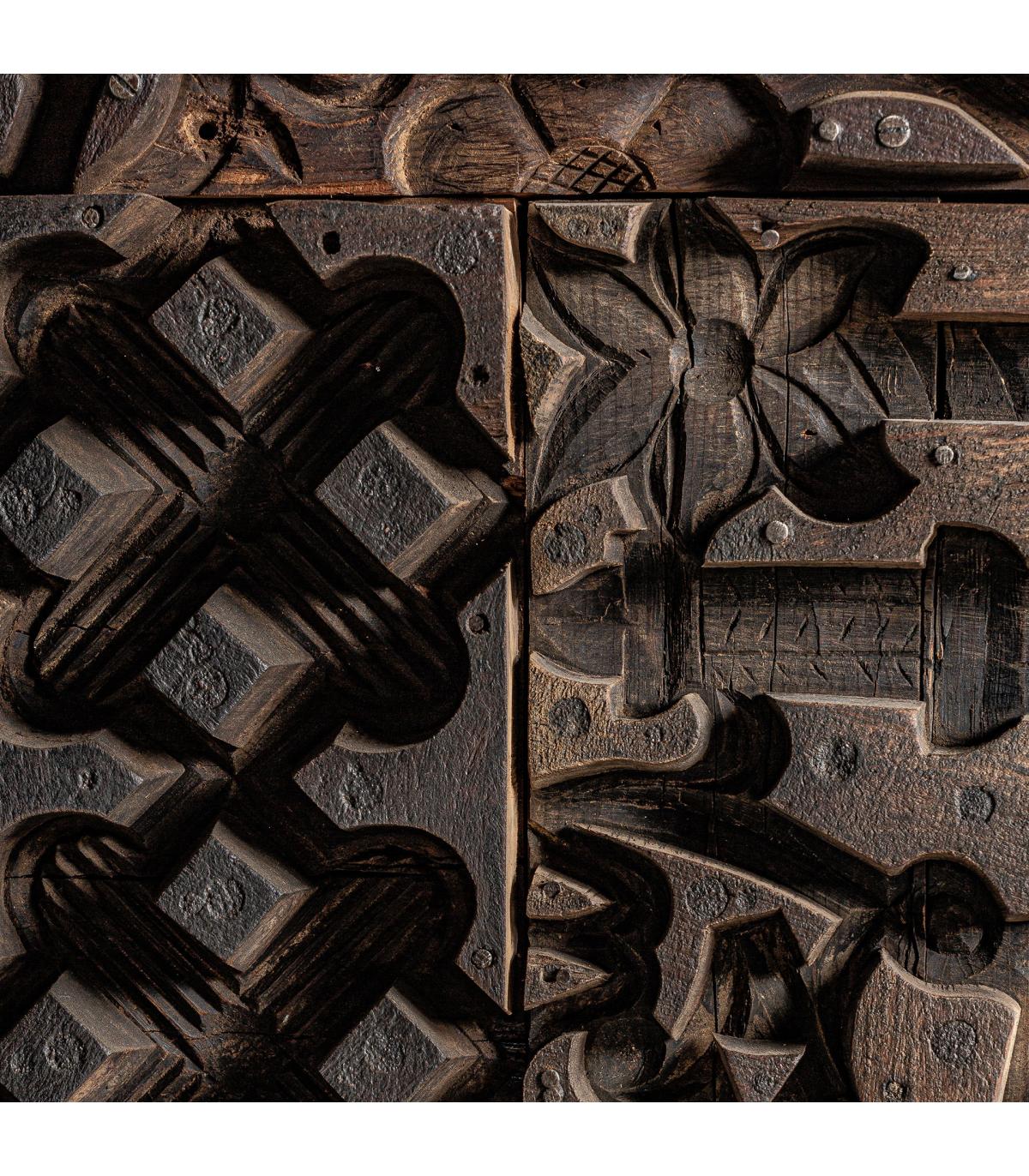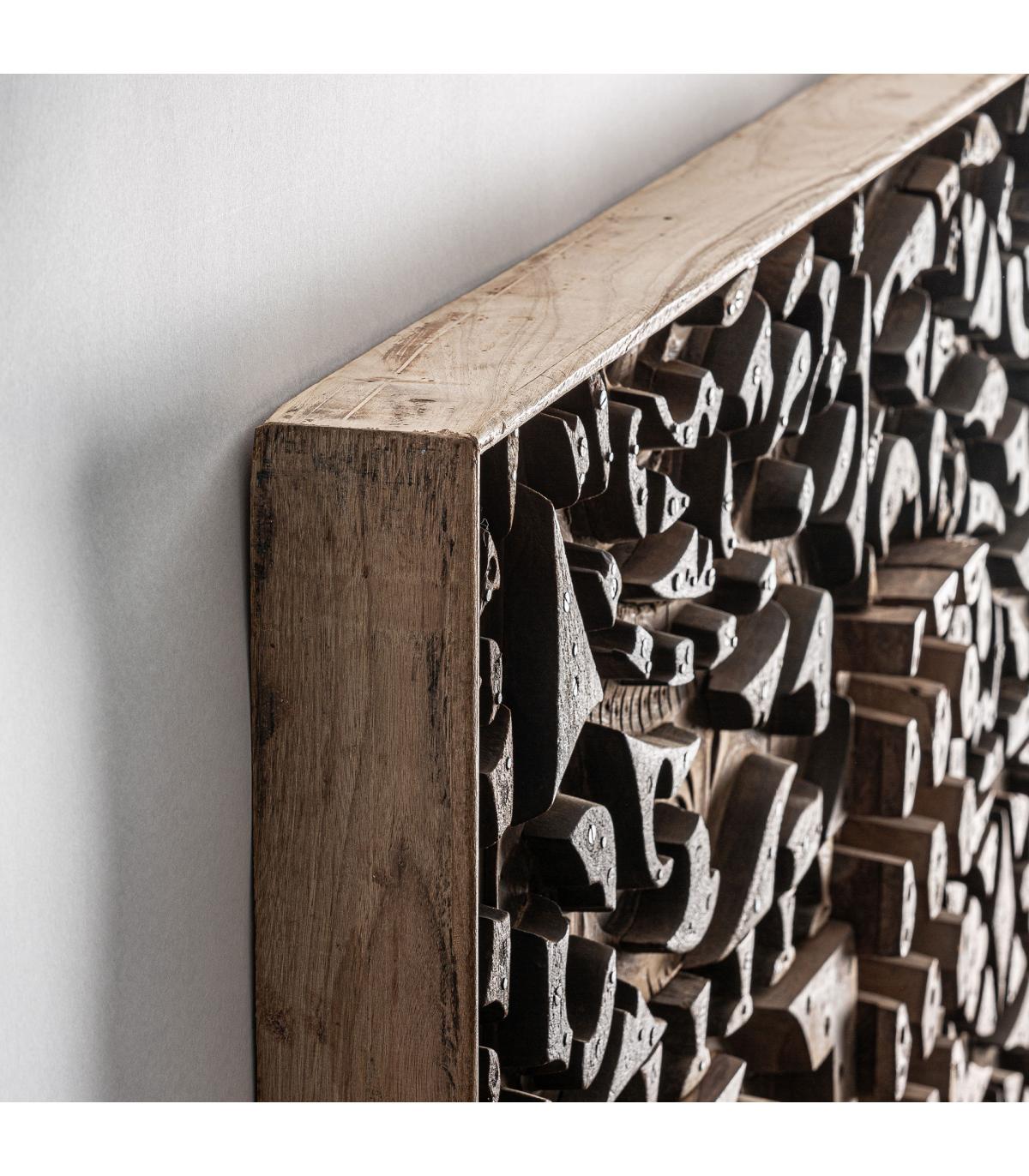 Panel decorativo Kissey de estilo étnico fabricado en madera de mango en color marrón con acabado tallado.