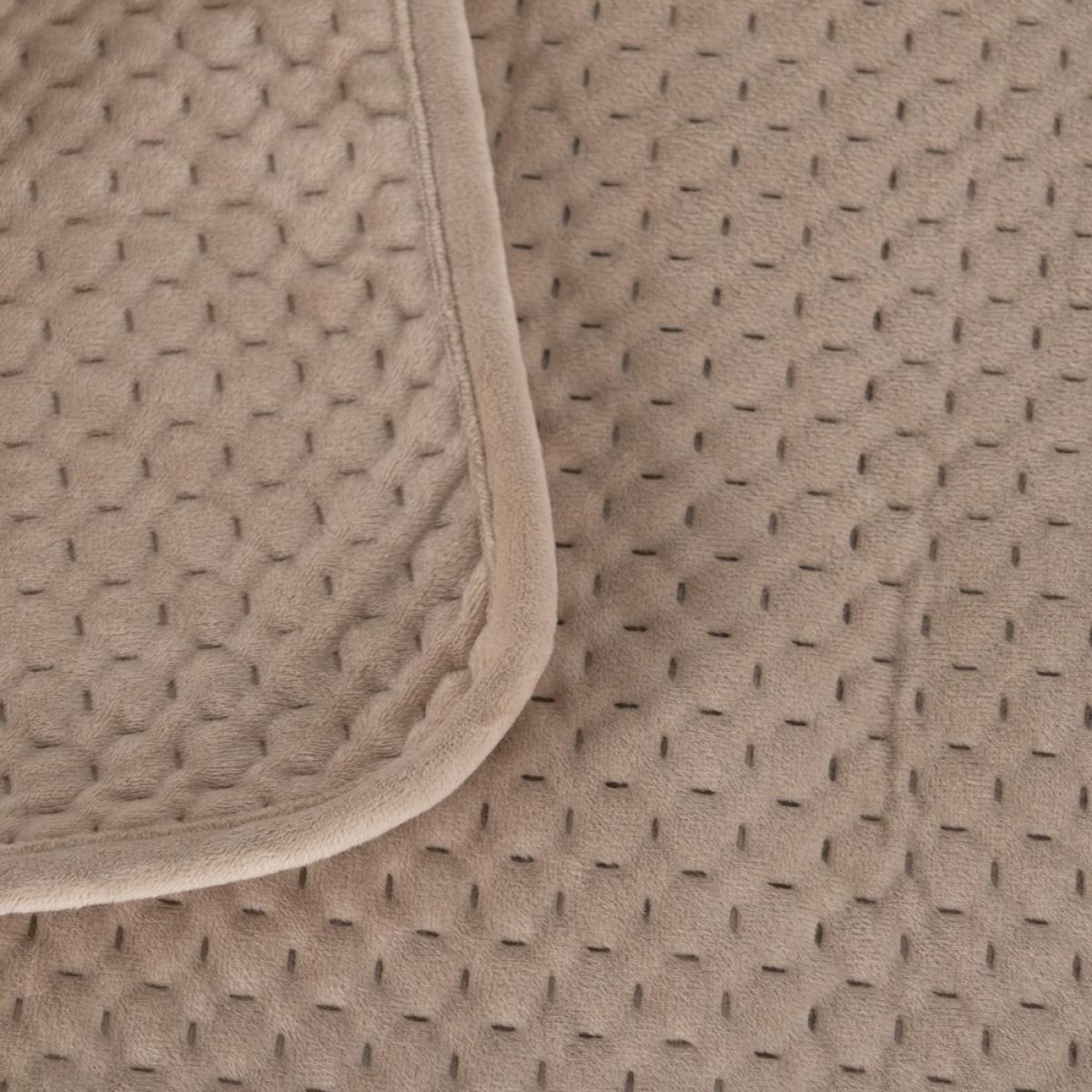 COLCHA BEIGE TERCIOPELO/MICROFIBRA 240 X 260 CM Tejido parte delantera: Terciopelo. Tejido parte trasera: microfibra. Gramaje: 120gr./m2. Relleno: Poliéster.