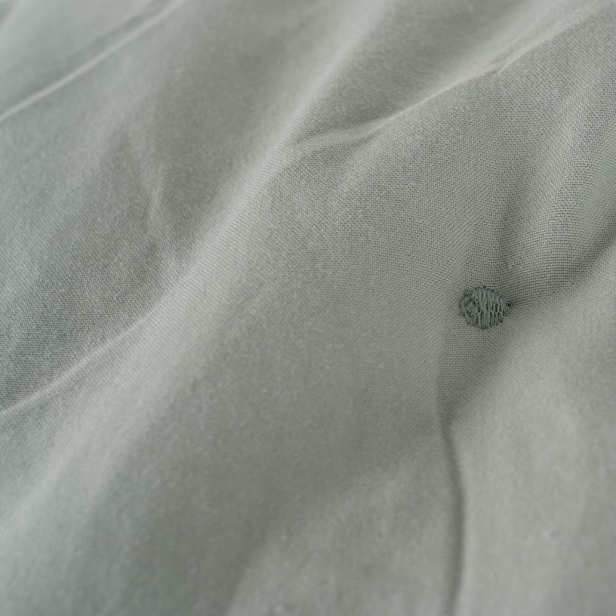 COLCHA VERDE POLIESTER DORMITORIO 270 X 280 CM Tejido parte delantera: 100% poliéster. Tejido parte trasera: microfibra prelavada. Gramaje: 130gr./m2. Relleno: Poliéster Instrucciones de lavado: - lavar temperatura máx. 30ºC. - no utilizar lejía. - no planchar. - no utilizar secadora.