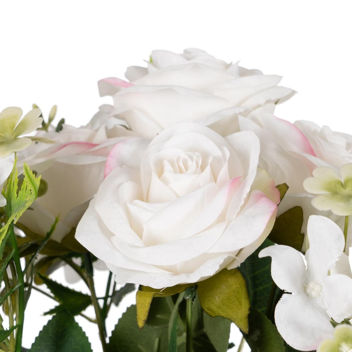 DECORACIÓN - FLORES 611733 - BOUQUET ROSAS BLANCO PVC-TEJIDO 43 CM